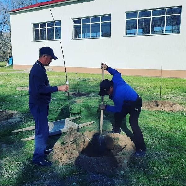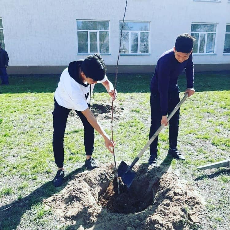 Көктем мезгілінің келуімен мектеп ауласын көгалдандыру мақсатында мектеп маңайына 20 түп жеміс ағашы отырғызылды.