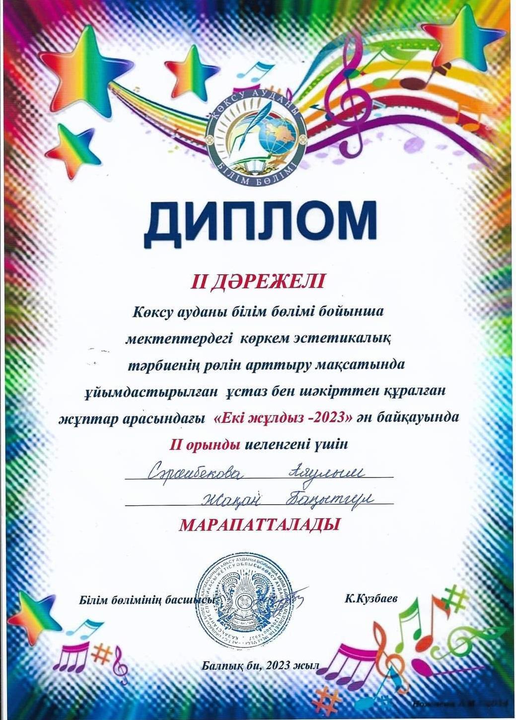 "Екі жұлдыз -2023" байқауының жеңімпаздары » Көксу ауданы Жетіжал орта мектебі