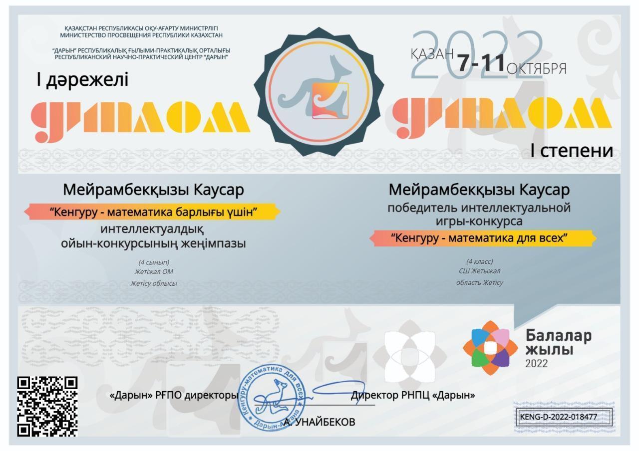 Жетіжал орта мектебінің 4-сынып оқушылары "Дарын" РҒПО @rspc_daryn ұйымдастыруымен өткен "Кенгуру - математика барлығы үшін" интеллектуалдық ойын-конкурсының жеңімпаздары болды.Оқушыларымыз І,ІІ,ІІІ дәрежелі дипломдармен марапатталды.Жетекшісі:Нурсалхан З. @akimat_koksu @koksu_bilim @zhetysu_bilim_baskarmasy @jetisy_daryny @rspc_daryn