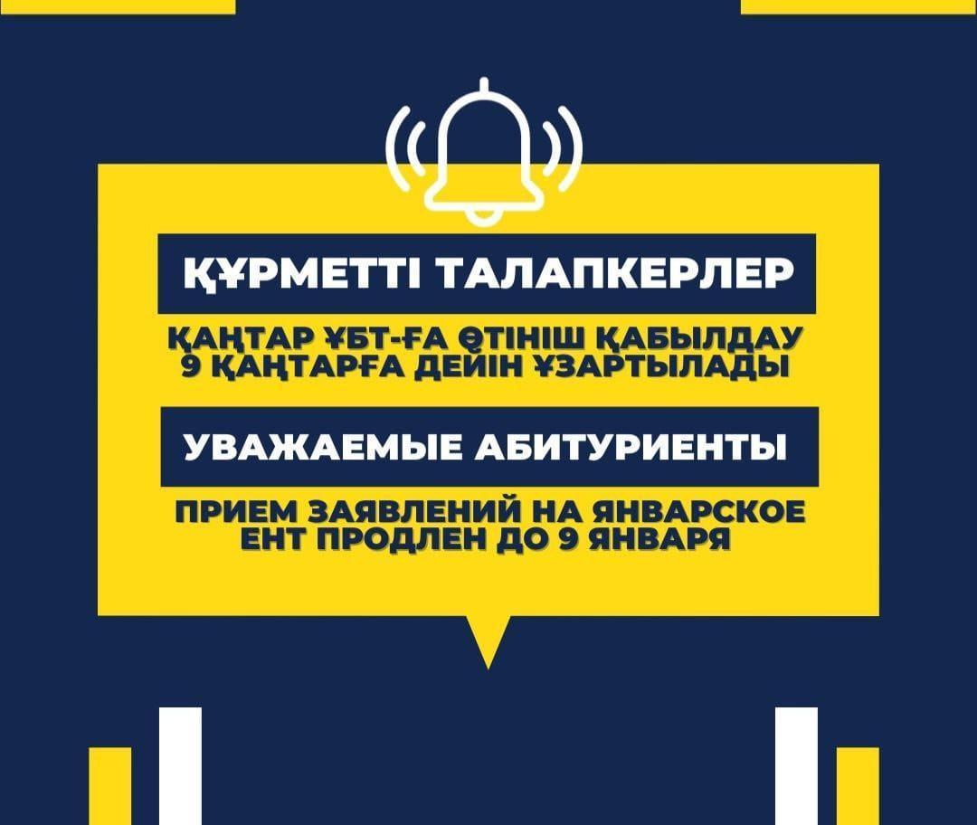 Қаңтар айындағы UNT-ға өтініш беру 9 қаңтарға (қоса алғанда) дейін ұзартылады.
