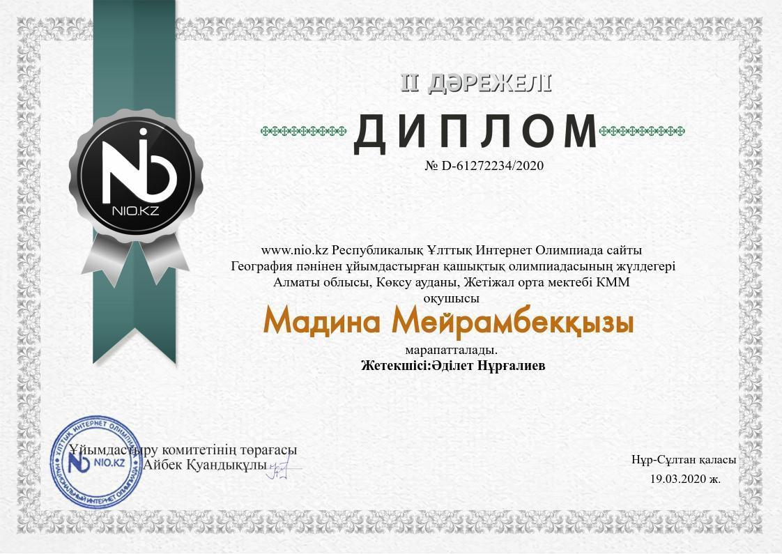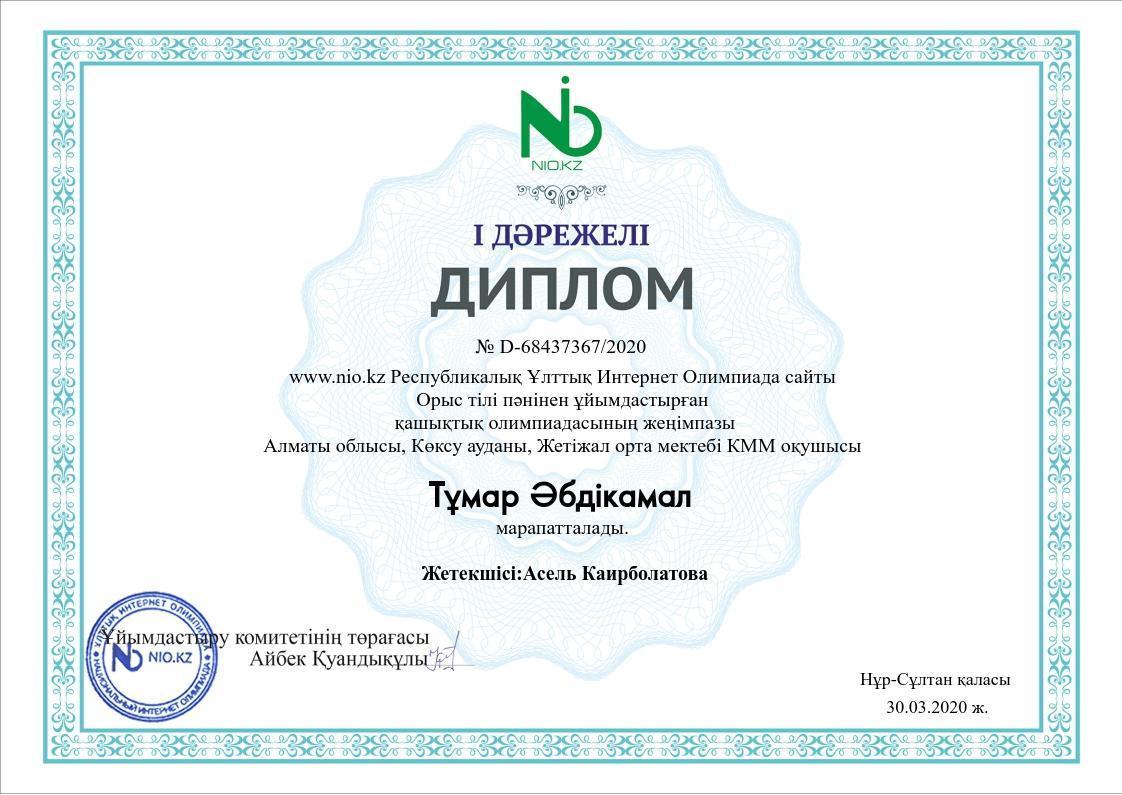 Оқушылар жетістігі 2020 » Көксу ауданы Жетіжал орта мектебі