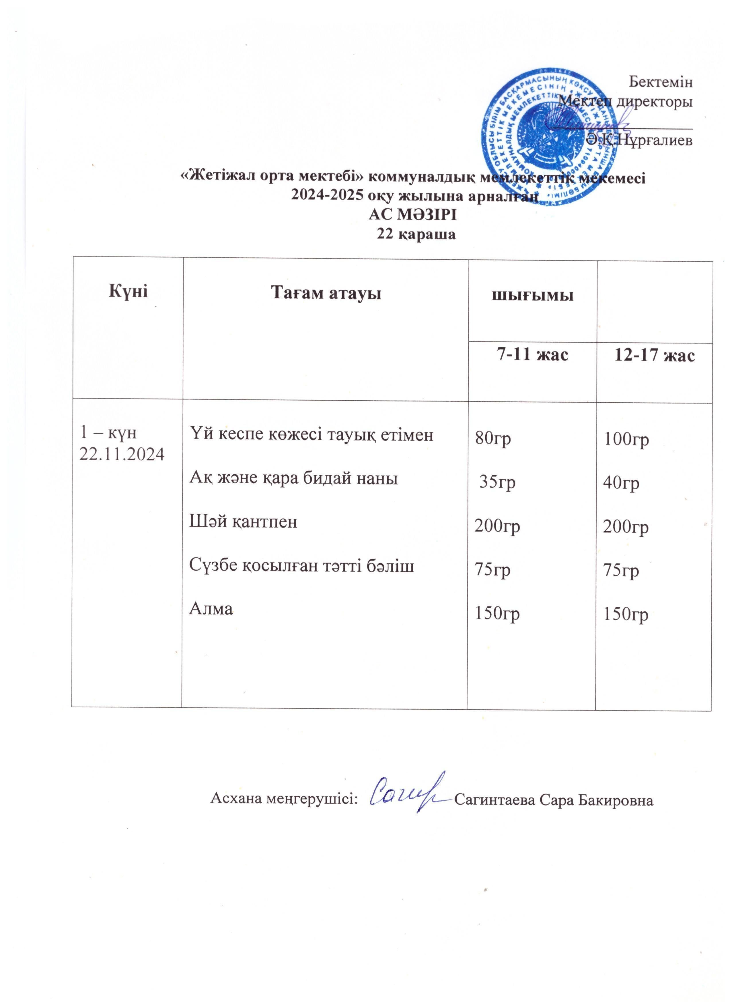 Ас мәзірі 22.11.2024ж » Көксу ауданы Жетіжал орта мектебі