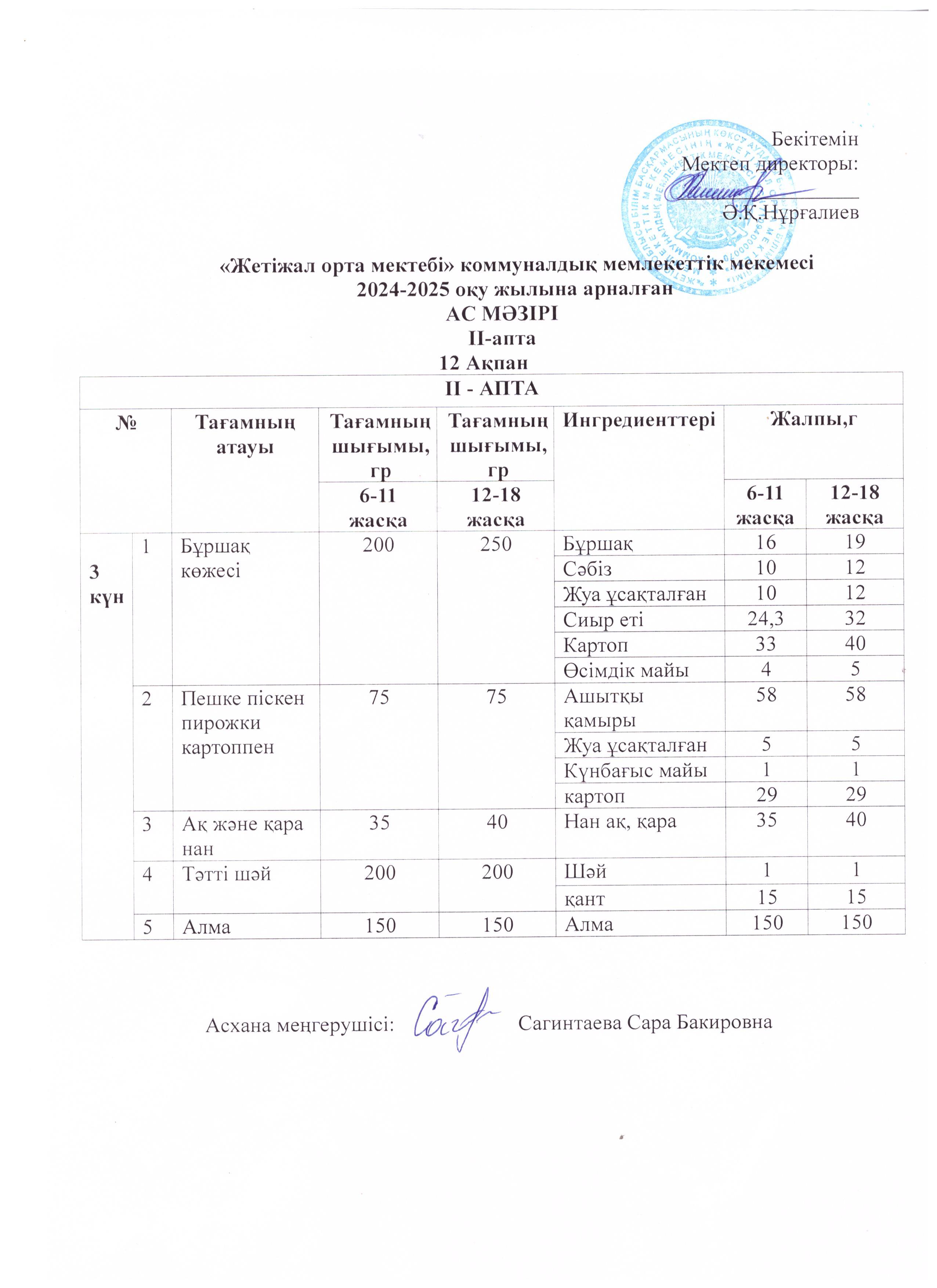 Ас мәзірі 12.01.2025ж » Көксу ауданы Жетіжал орта мектебі