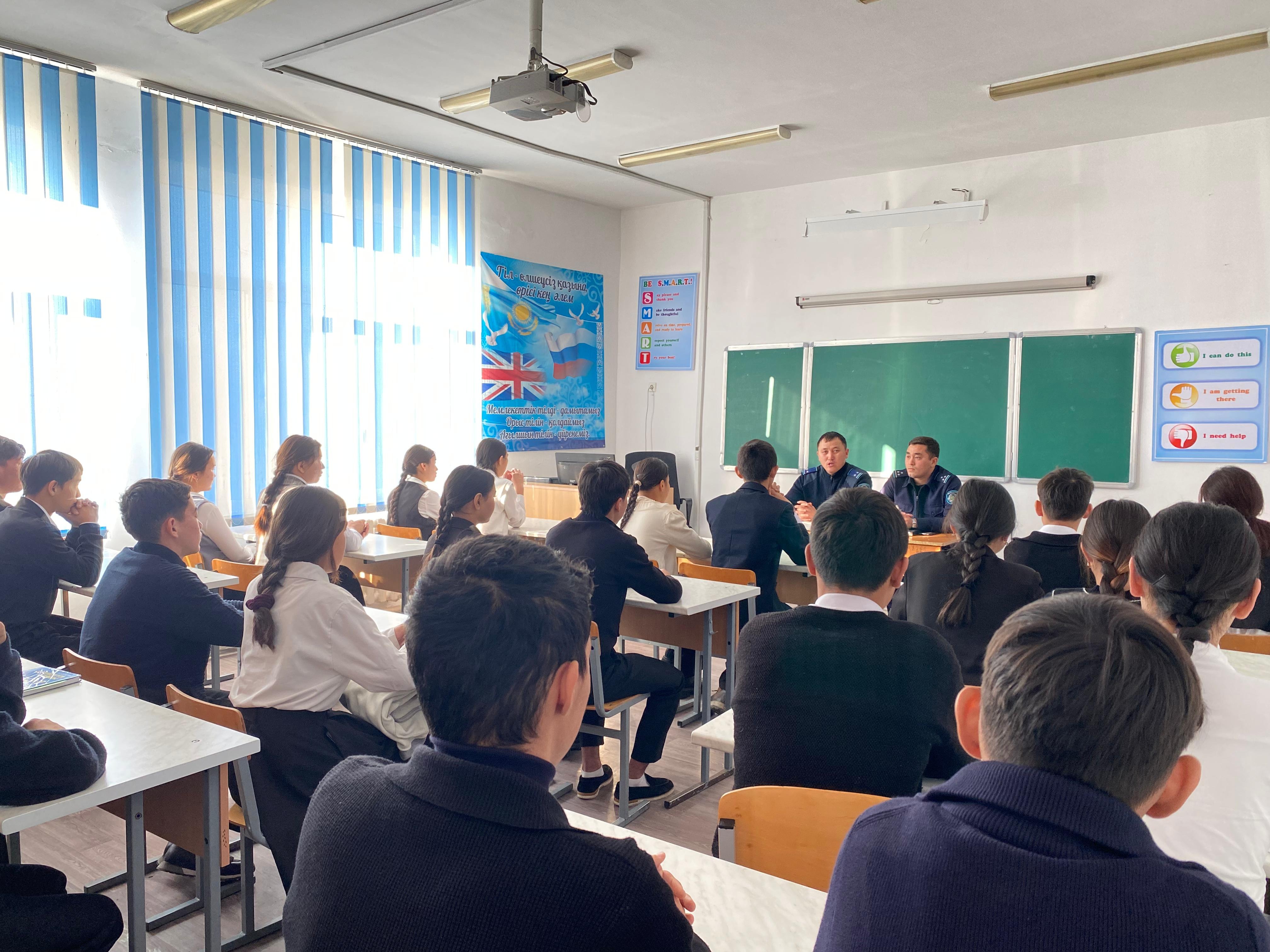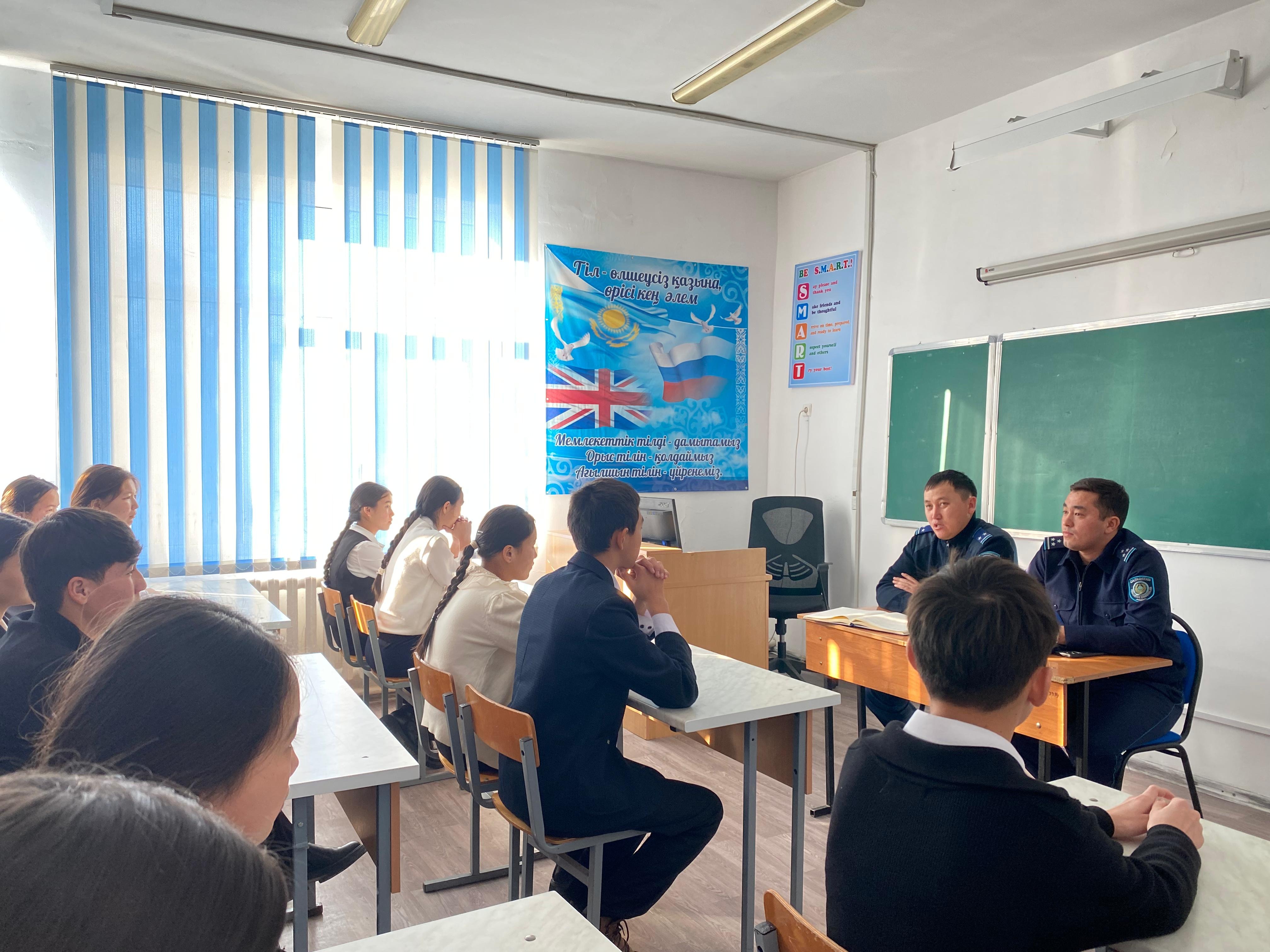 Көксу АПБ ЖПҚБ ЮПТ УПИ полиция қызметкерлерімен кездесу » Көксу ауданы Жетіжал орта мектебі