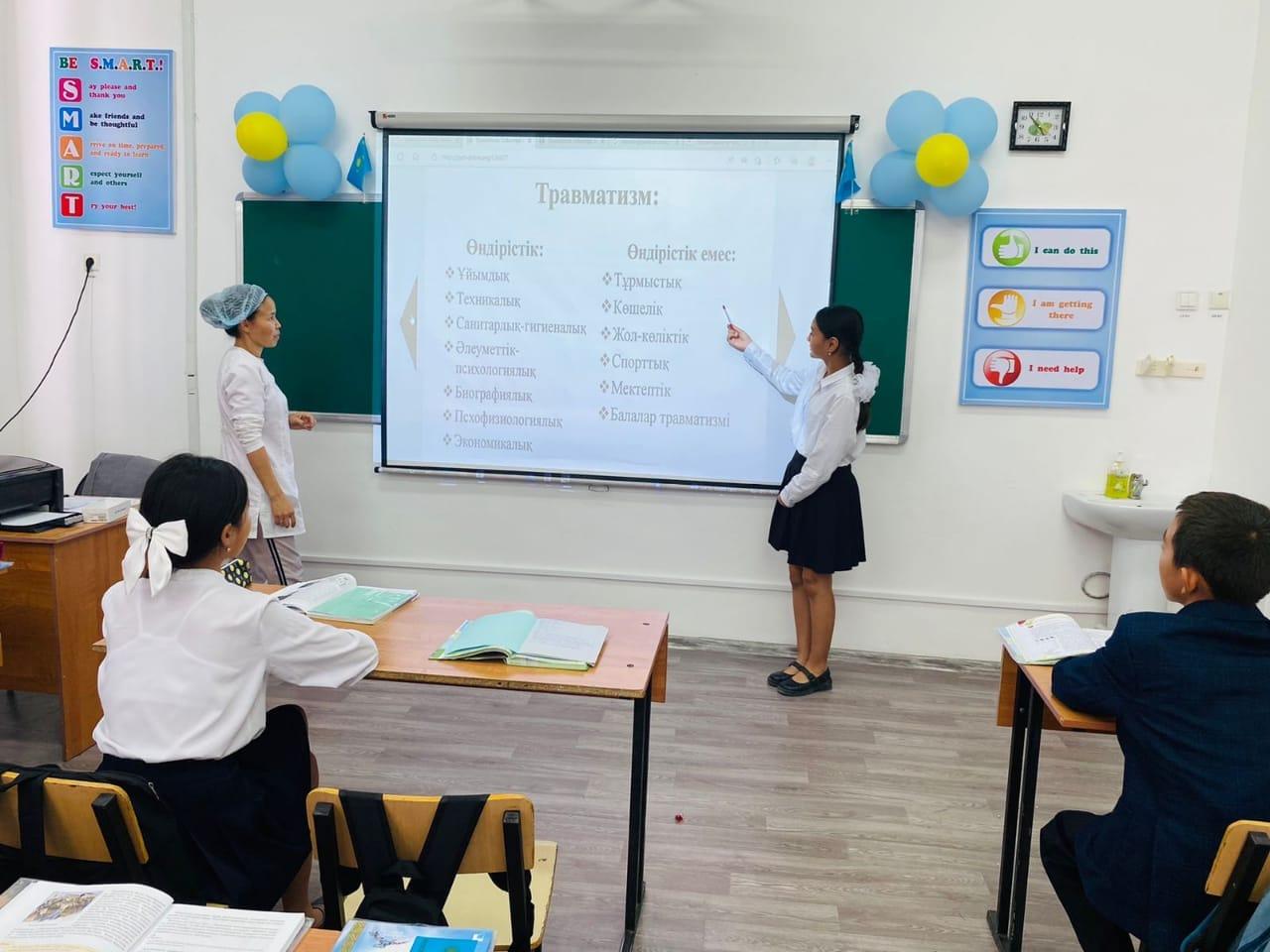 Ата – аналар жиналысттары ұйымдастырылды. Мектеп директоры Нұрғалиев Әділет Қайратұлы сөз алып, оқушыларға қосымша ақпарат беріп, кешкі мезгілде көшеде жүруге болмайтындығын айтылып, мектеп тарапынан рейд үнемі жүргізілетіндігін хабардар етті. Балалар арасында мотоцикл және көлік айдайтын балалар бар екендігін айтып, ескерту жасады. Оқушыларға мектеп формасы туралы да үнемі жұмыстар ұйымдастырылып отырады. Мектеп медбикесі Назым Байдилдаева мектеп оқушыларына травматизм бойынша толық түсіндірмелі жұмыстар ұйымдастырды.