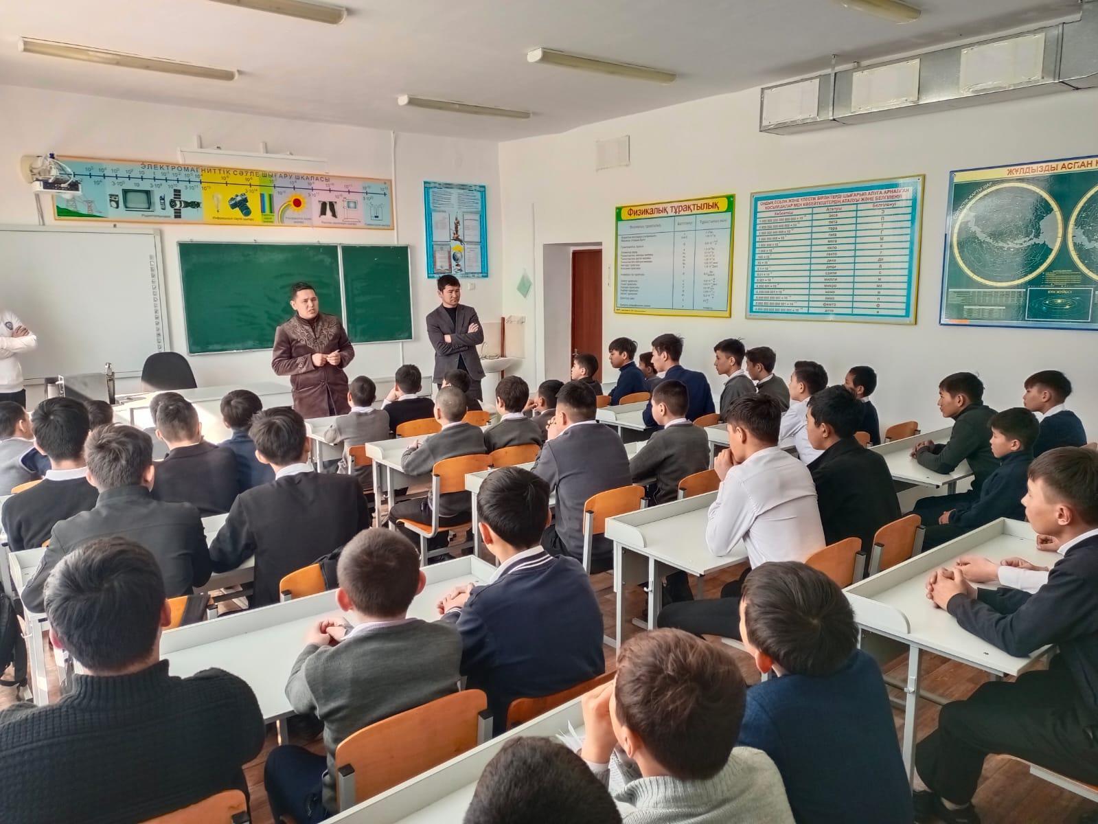 Құқықбұзушлықтың алдын-алу мақсатында, мектебіміздің 5-11 сынып оқушылары арасында "Ұлдар жиналысы" өткізілді. Ұлдар арасындағы әлімжеттік, бопсалау, буллинг, денсаулыққа кері әсері бар заттарды пайдаланбау туралы түсіндірме жұмыстары жүргізілді. Мектеп ережесіне сай, мектеп формасын, шаш үлгілерін, тазалықты сақтау, мектепке әкелуге болмайтын, тыйым салынған заттар туралы толық ақпараттар берілді.Сондай - ақ "Терроризмнен сақтану жолдары" тақырыбында түсіндірме жұмыстары жүргізілді.