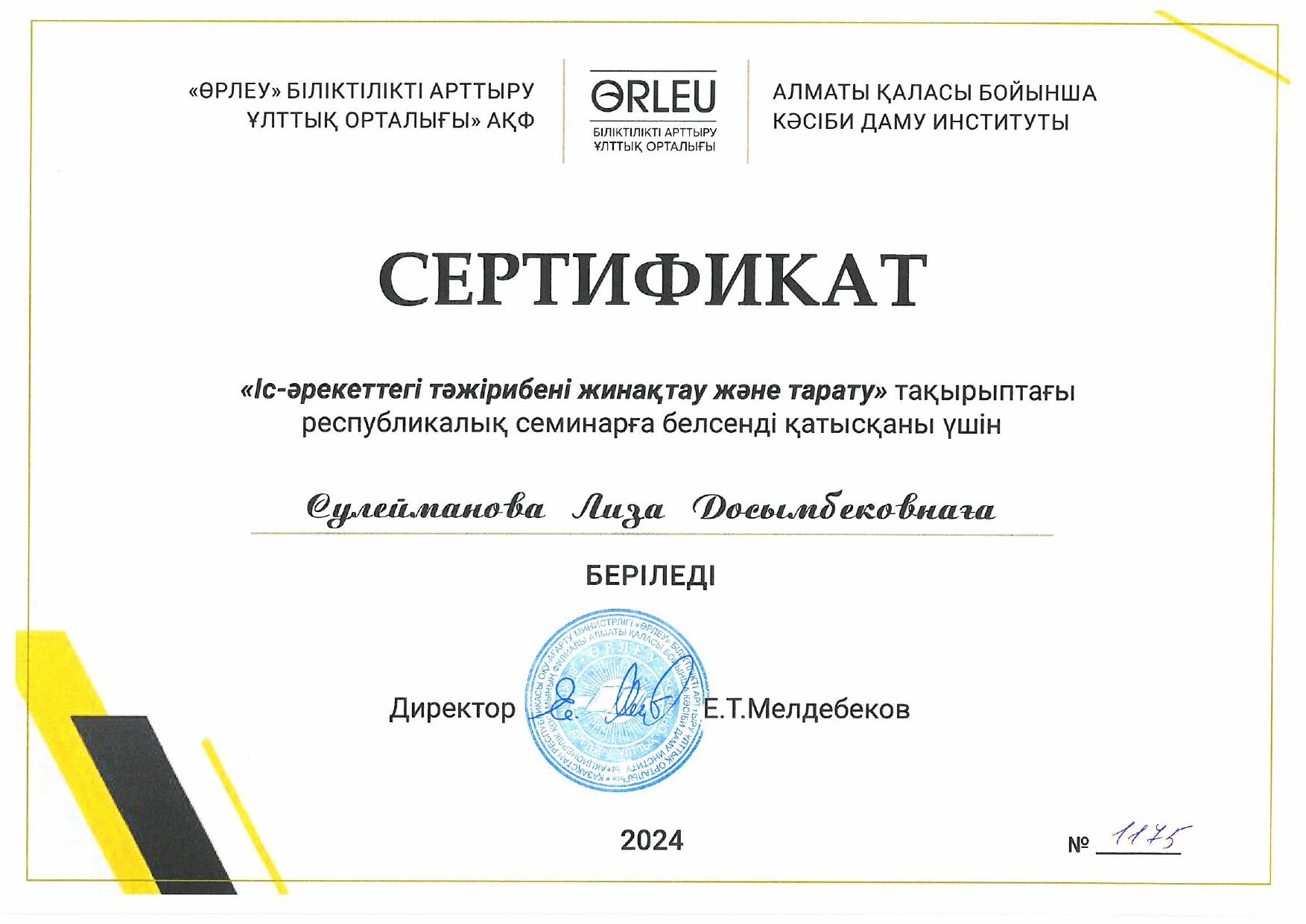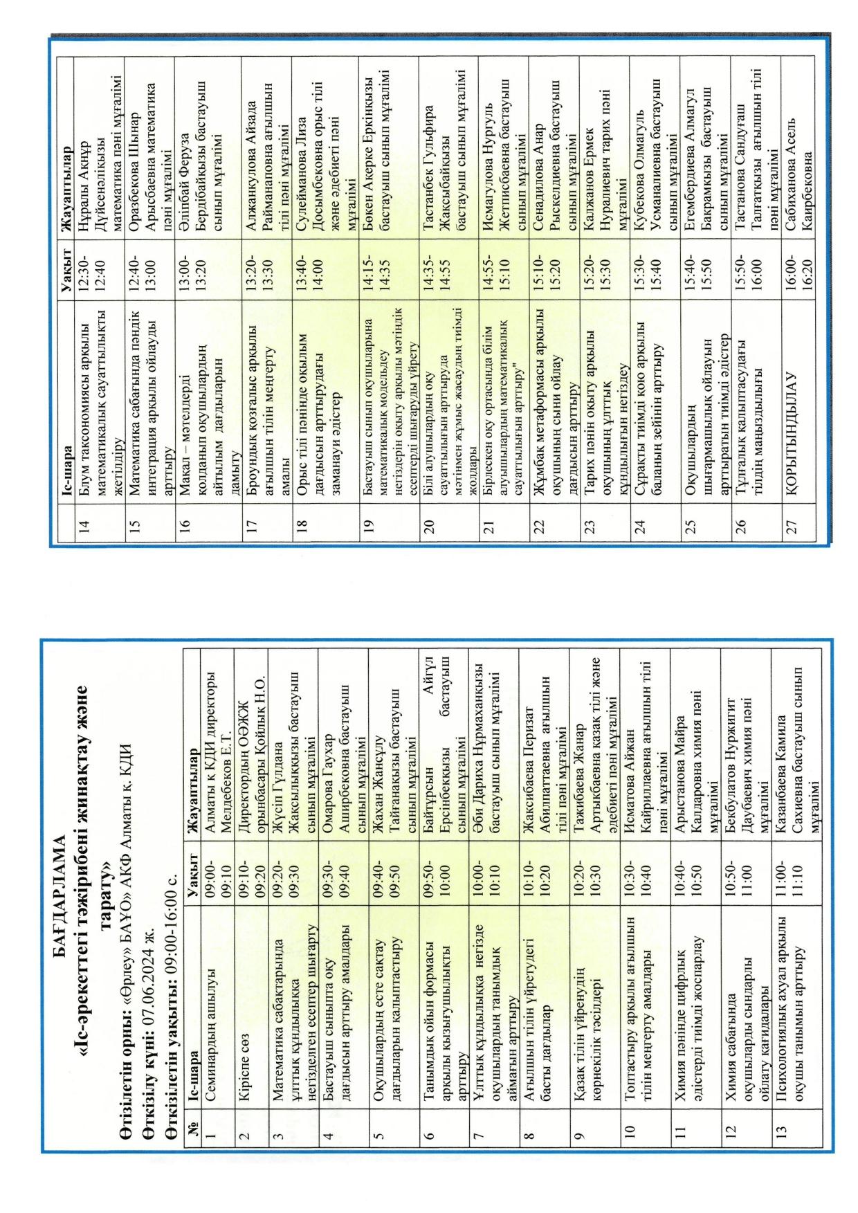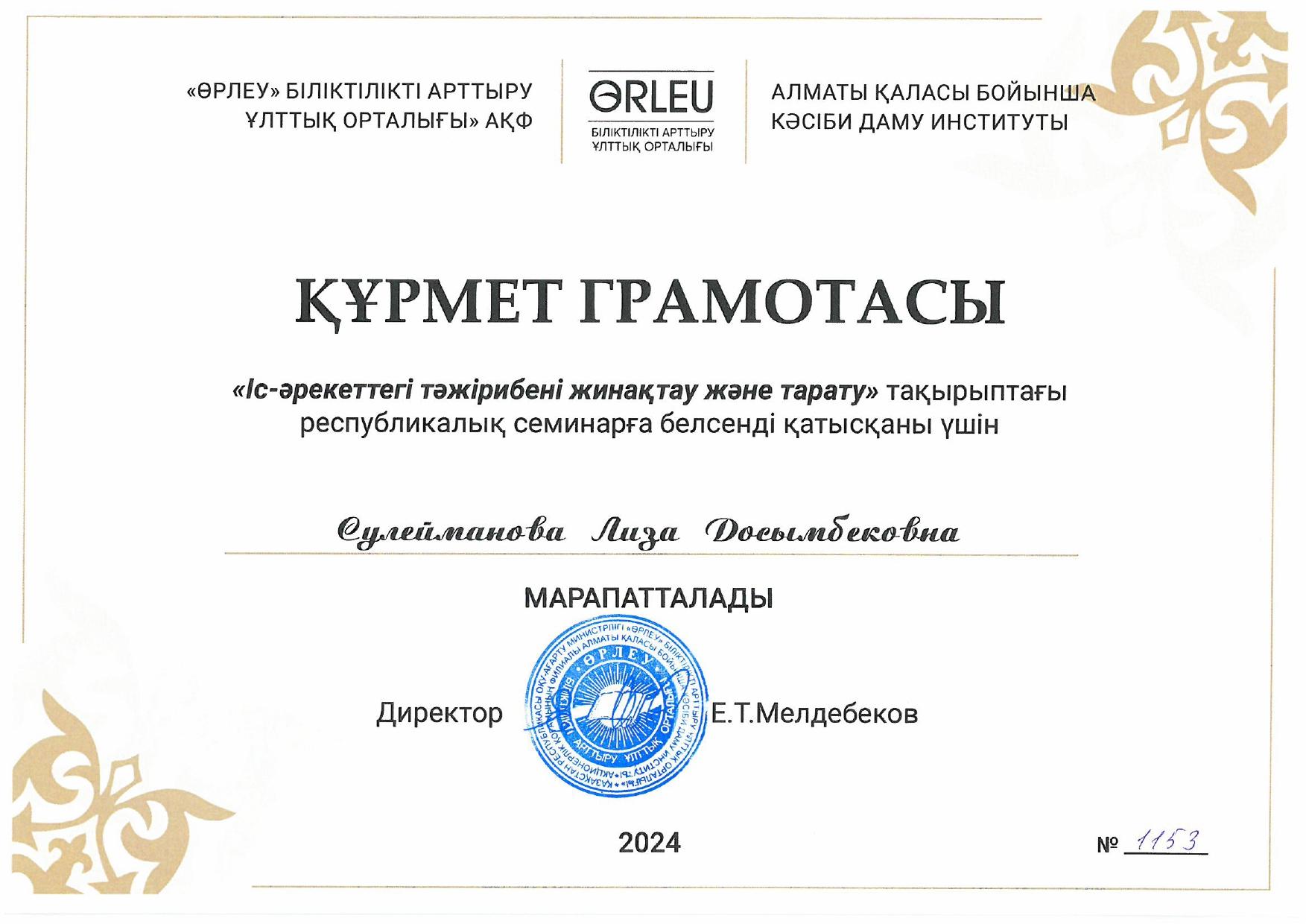 07 июнь 2024 0 1 2 3 4 5 Орыс тілі пәнінде оқылым дағдысын арттырудағы заманауи әдістер тақырыбында орыс тілі мен әдебиеті пәні мұғалімі Сулейманова Л.Д іс-тәжірибе таратты