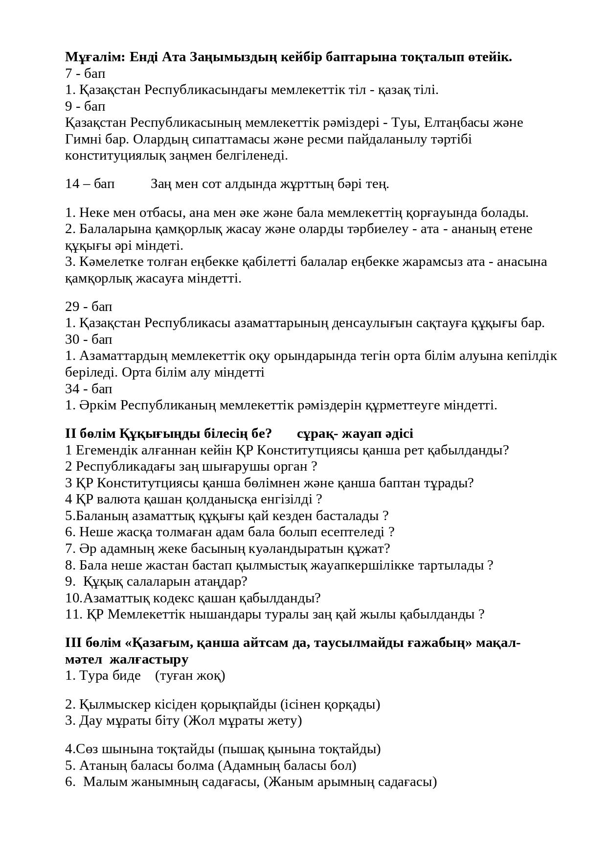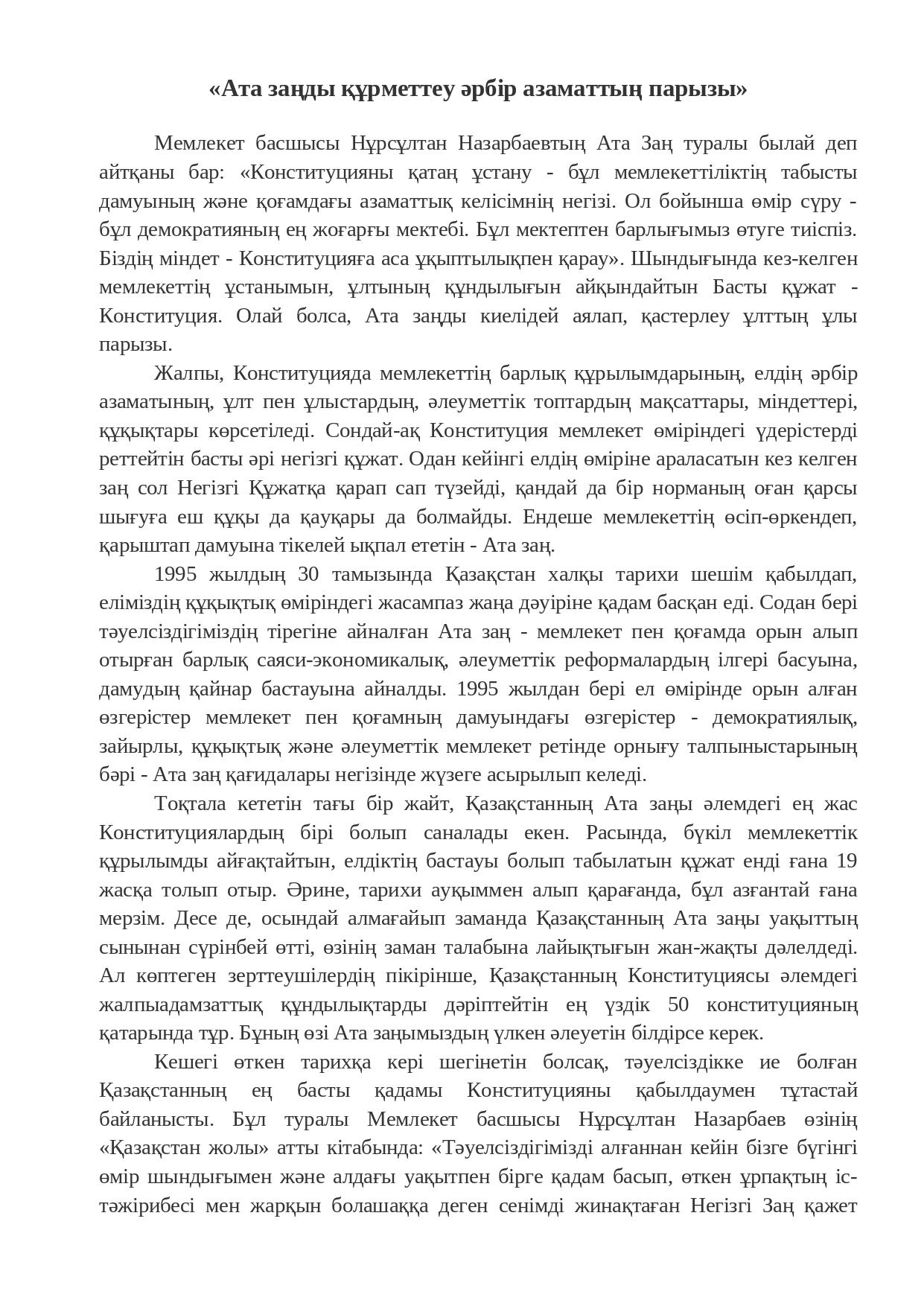 » » » «Ата заңды құрметтеу - әрбір азаматтың парызы» баяндама