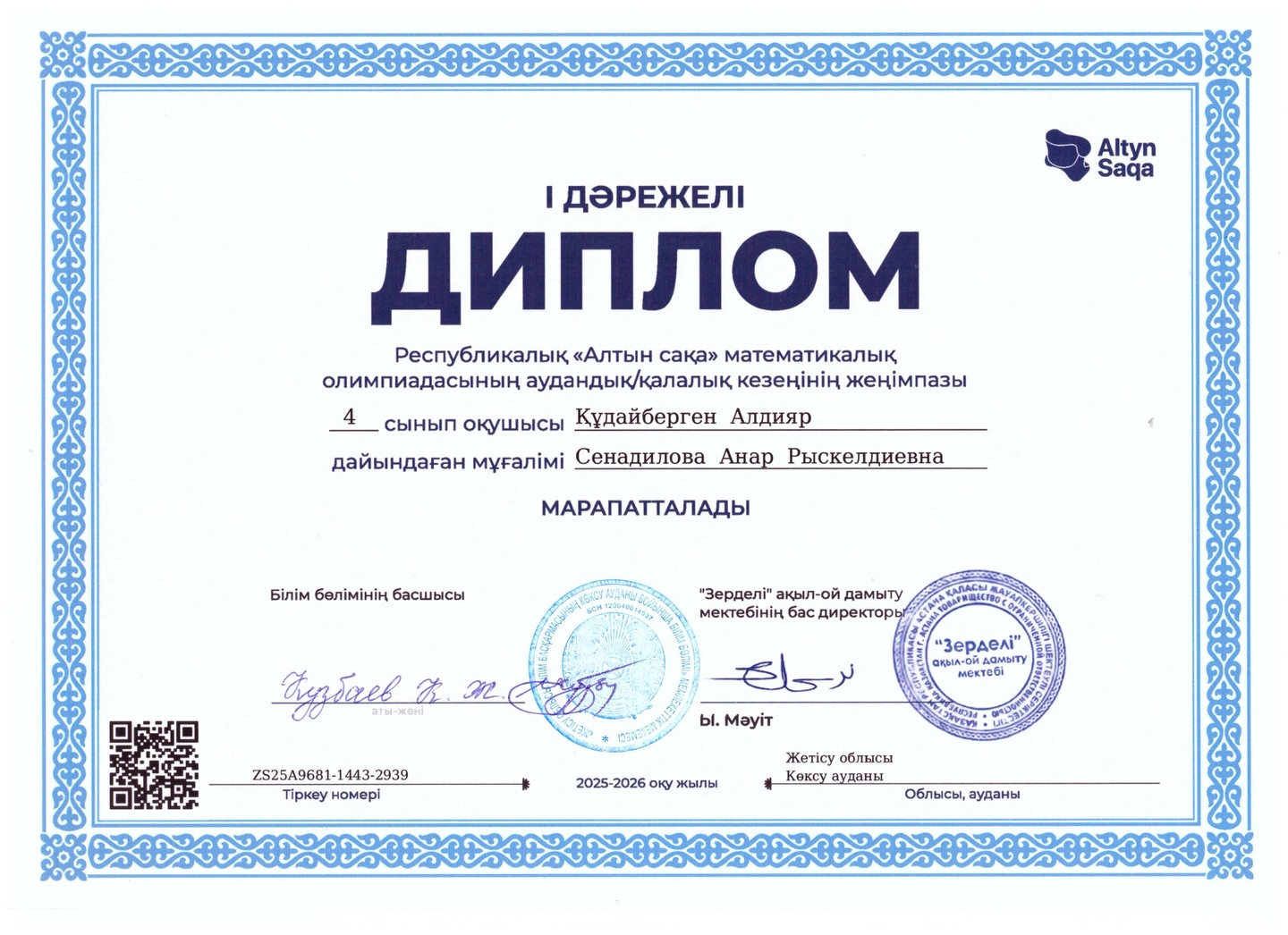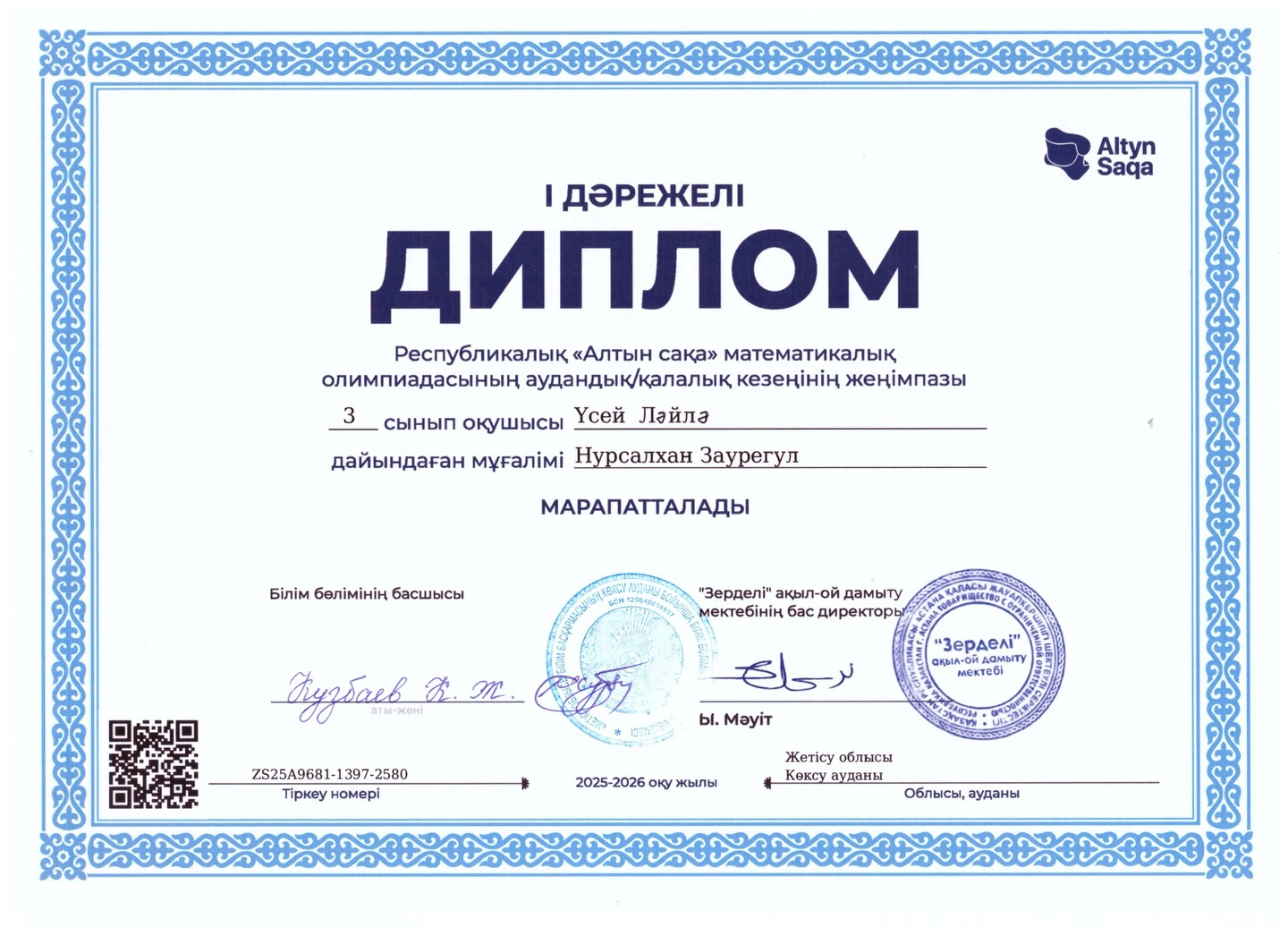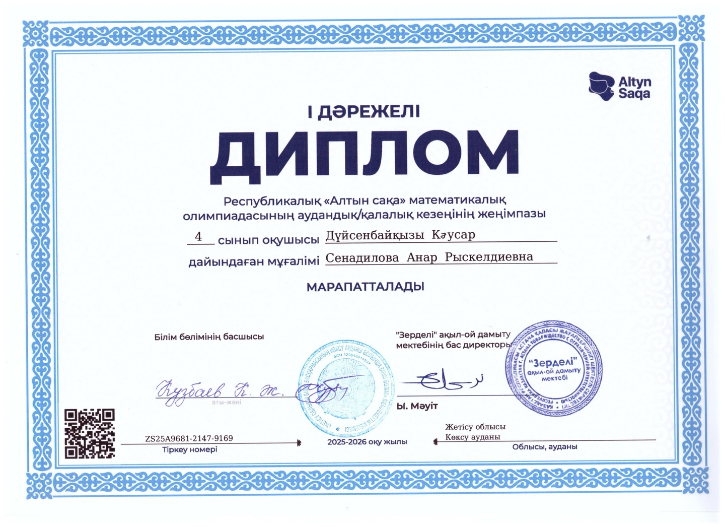 Республикалық «Алтын сақа» математикалық олимпиадасының аудандық/қалалық кезеңінде жүлделі орындарға ие болған оқушыларымызды шын жүректен құттықтаймыз!