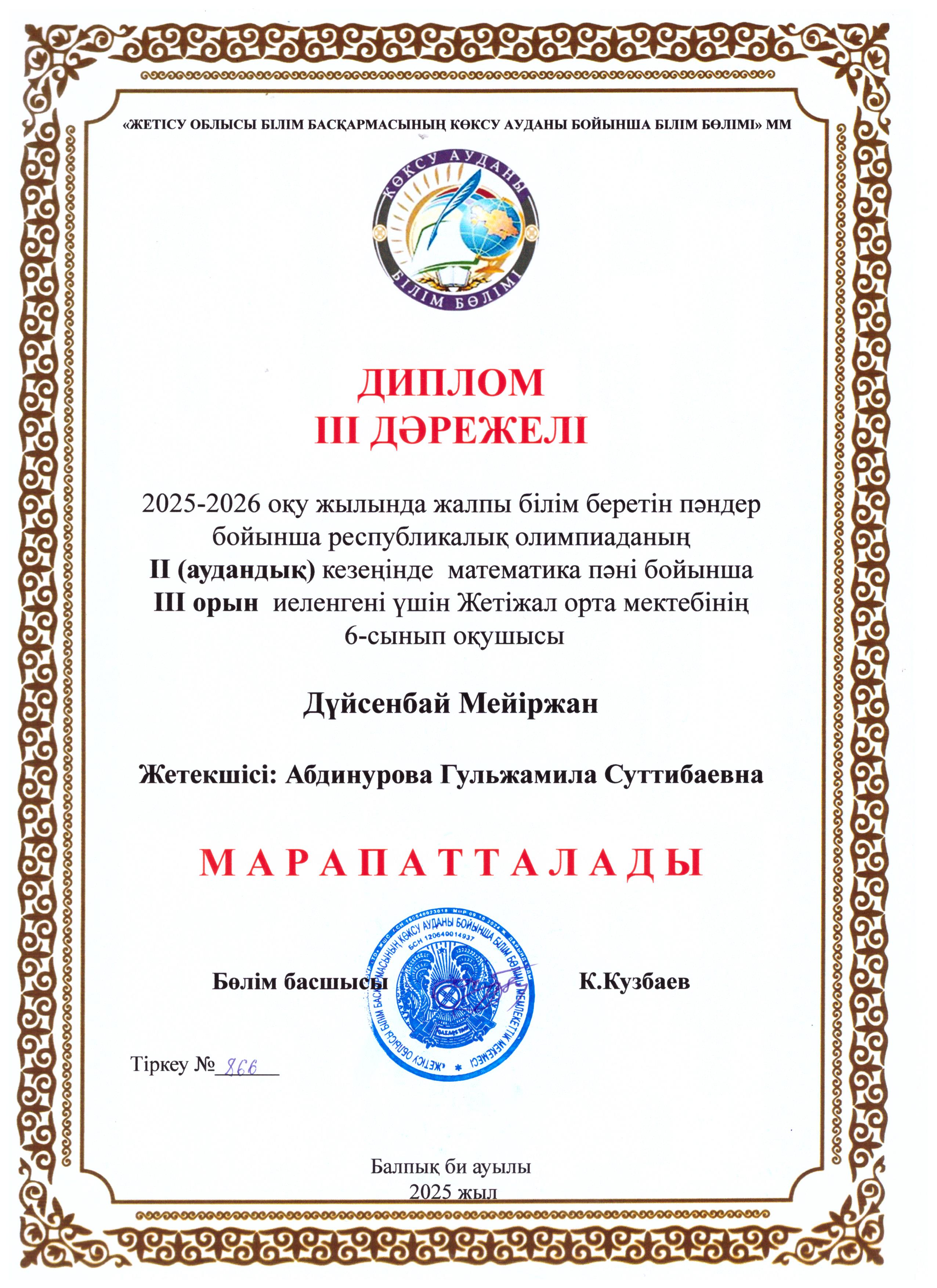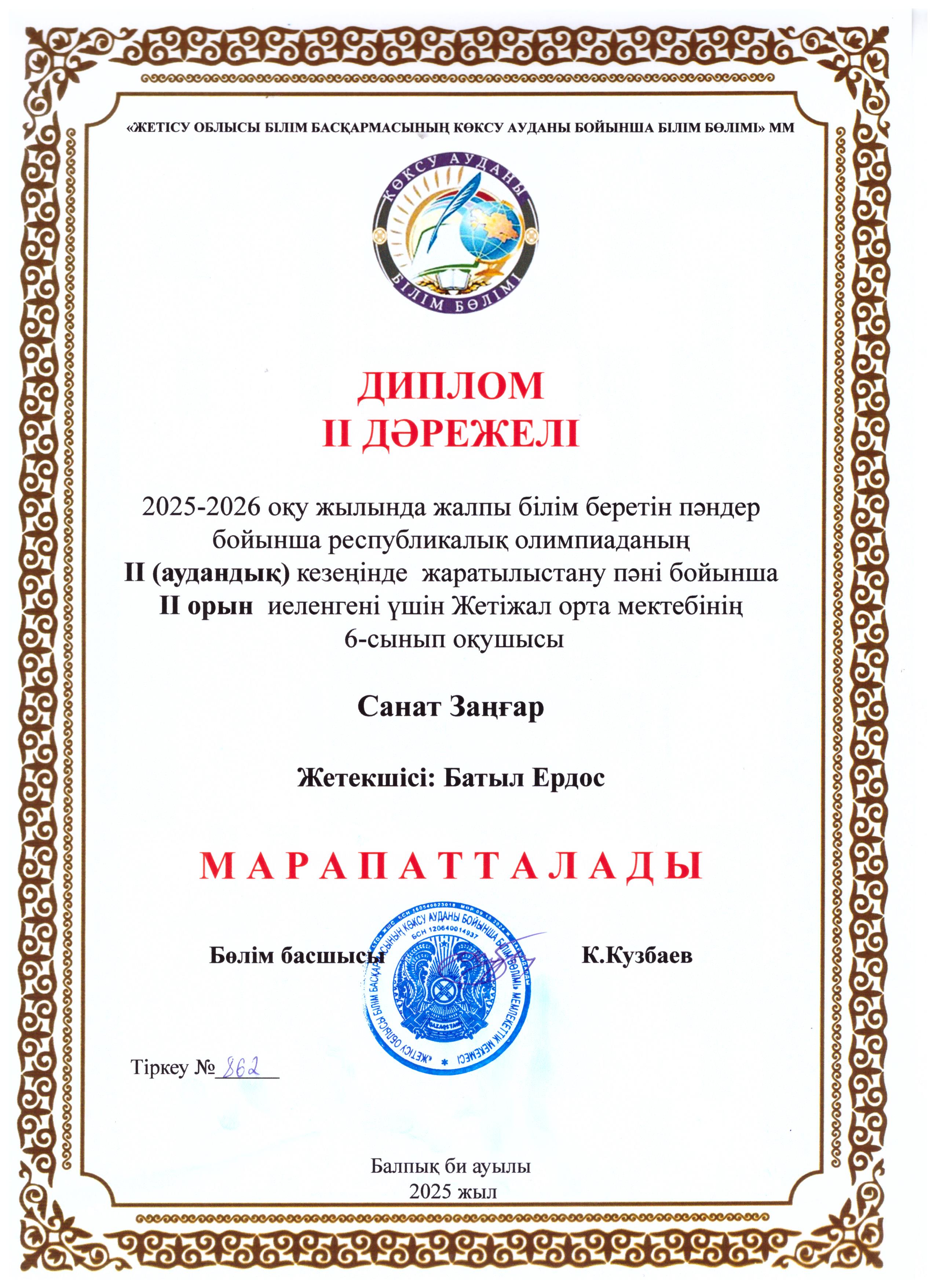 2025–2026 оқу жылында жалпы білім беретін пәндер бойынша республикалық олимпиаданың II (аудандық) кезеңінде орын алған барлық жеңімпаздар мен жүлдегерлерді құттықтаймыз!