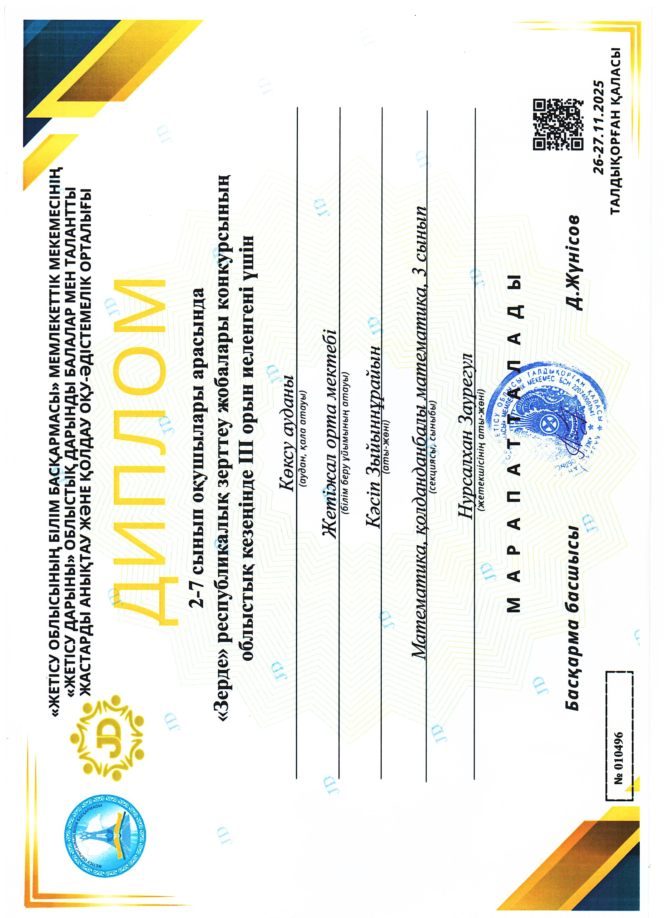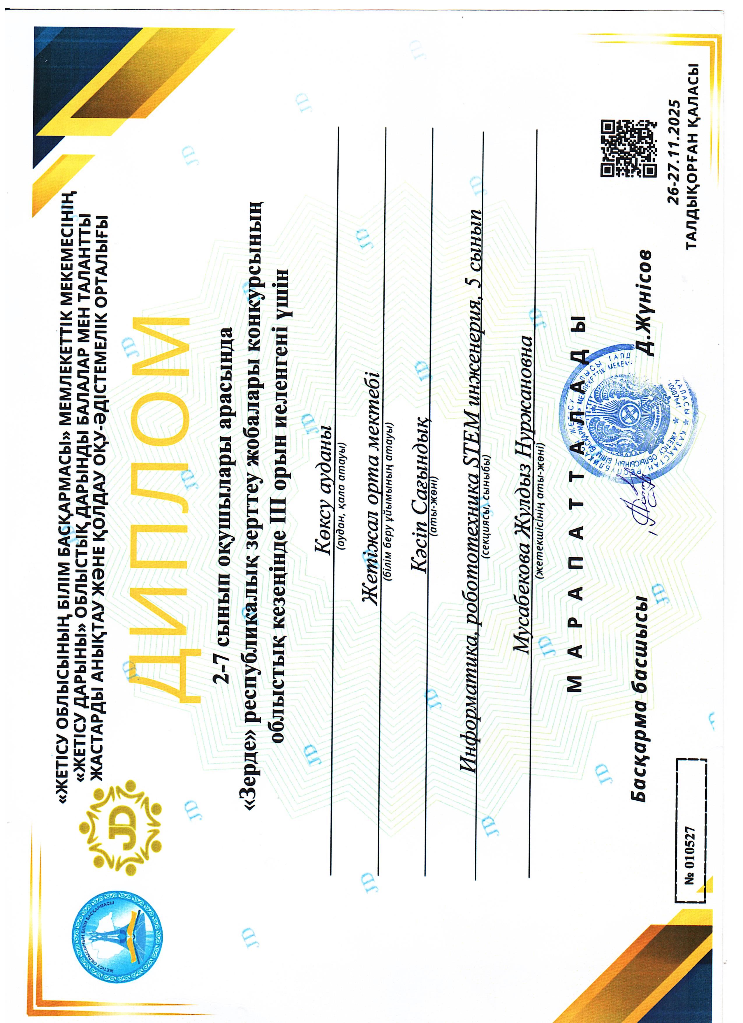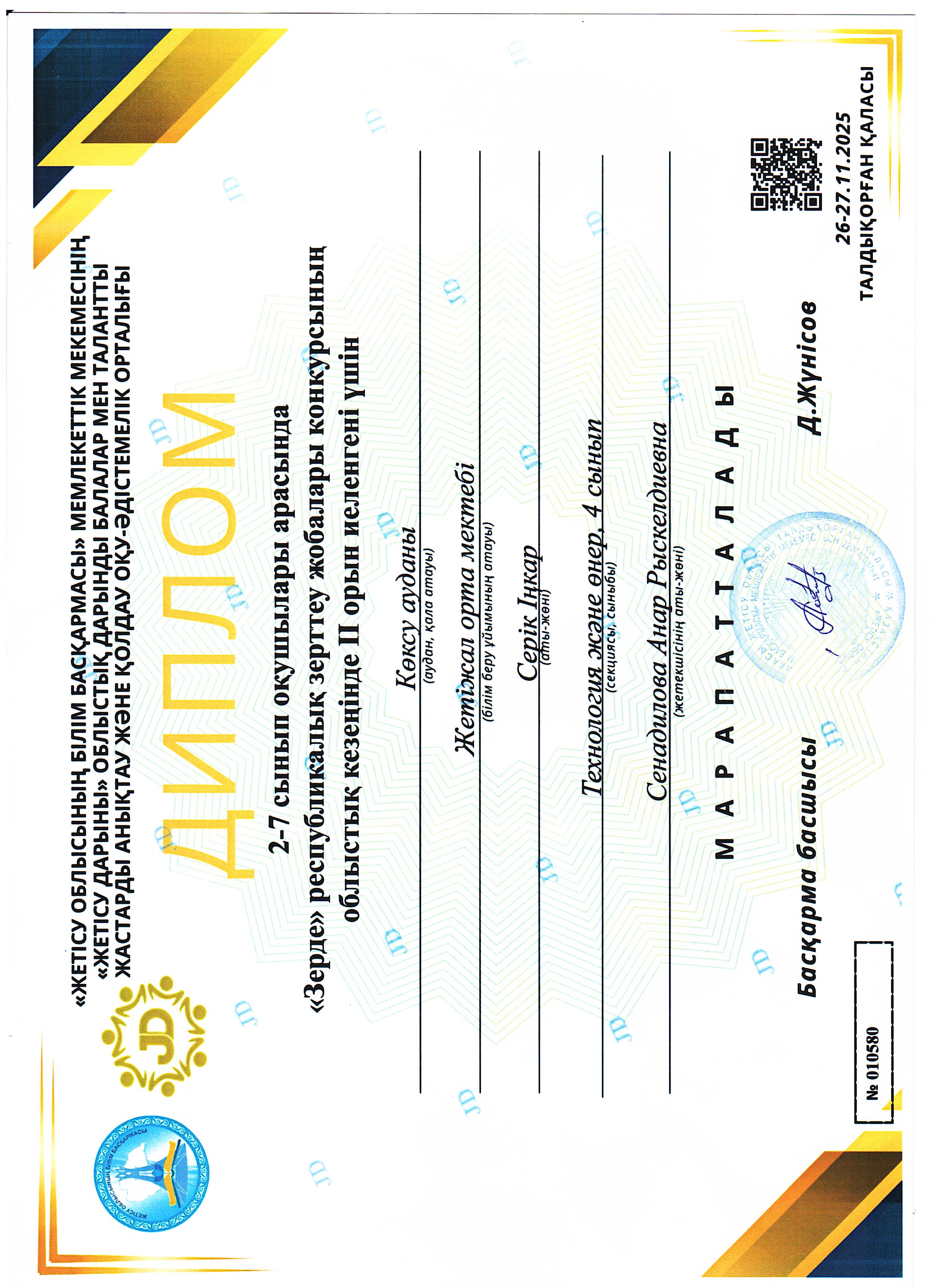 2–7 сынып оқушылары арасында өткен «Зерде» республикалық зерттеу жобалары конкурсының облыстық кезеңінде жүлделі орындарға ие болған оқушыларымызды шын жүректен құттықтаймыз!