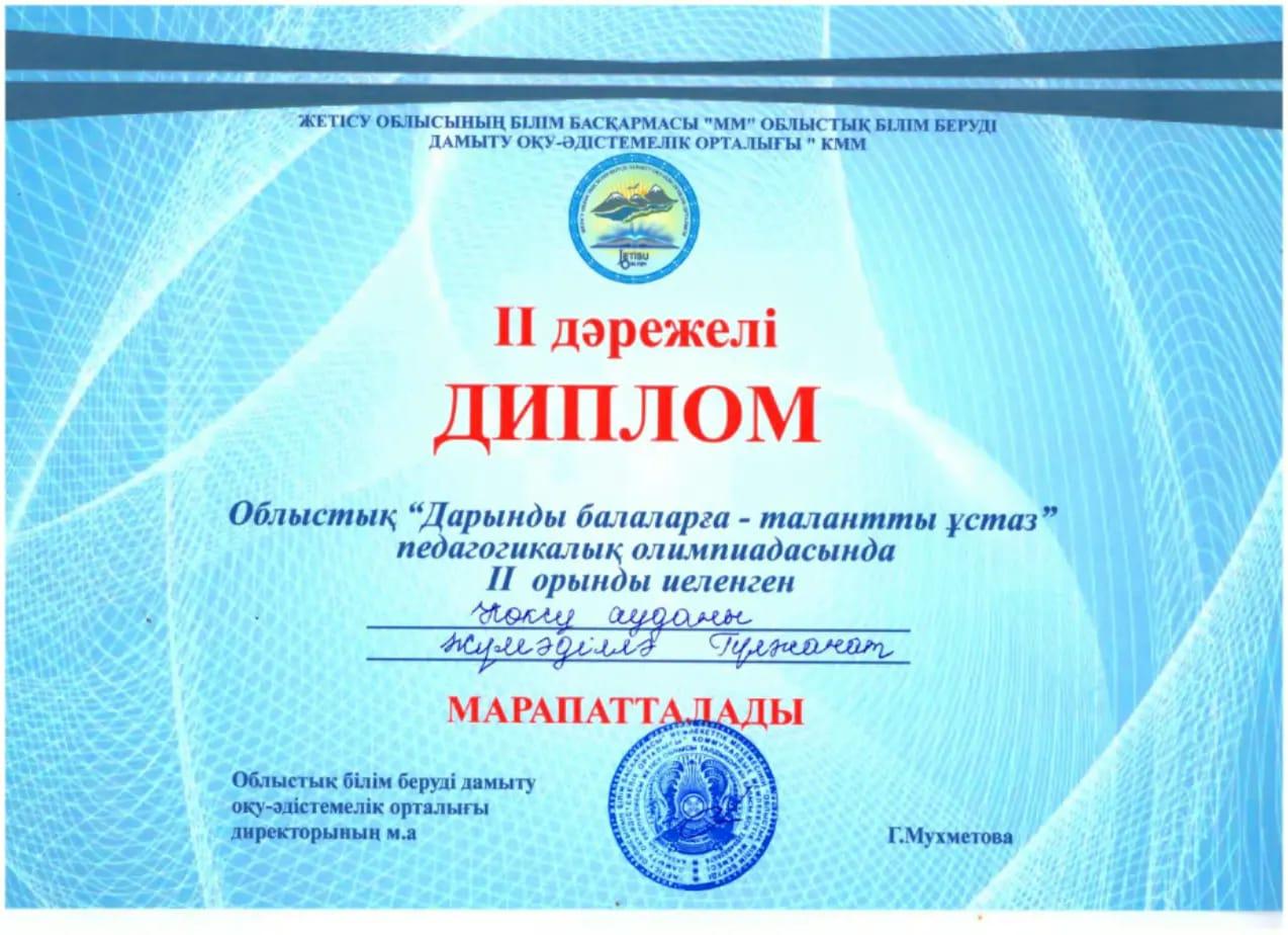 Облыстық "Дарынды балаларға-талантты ұстаз" педагогикалық олипиадасы » Көксу ауданы Жетіжал орта мектебі