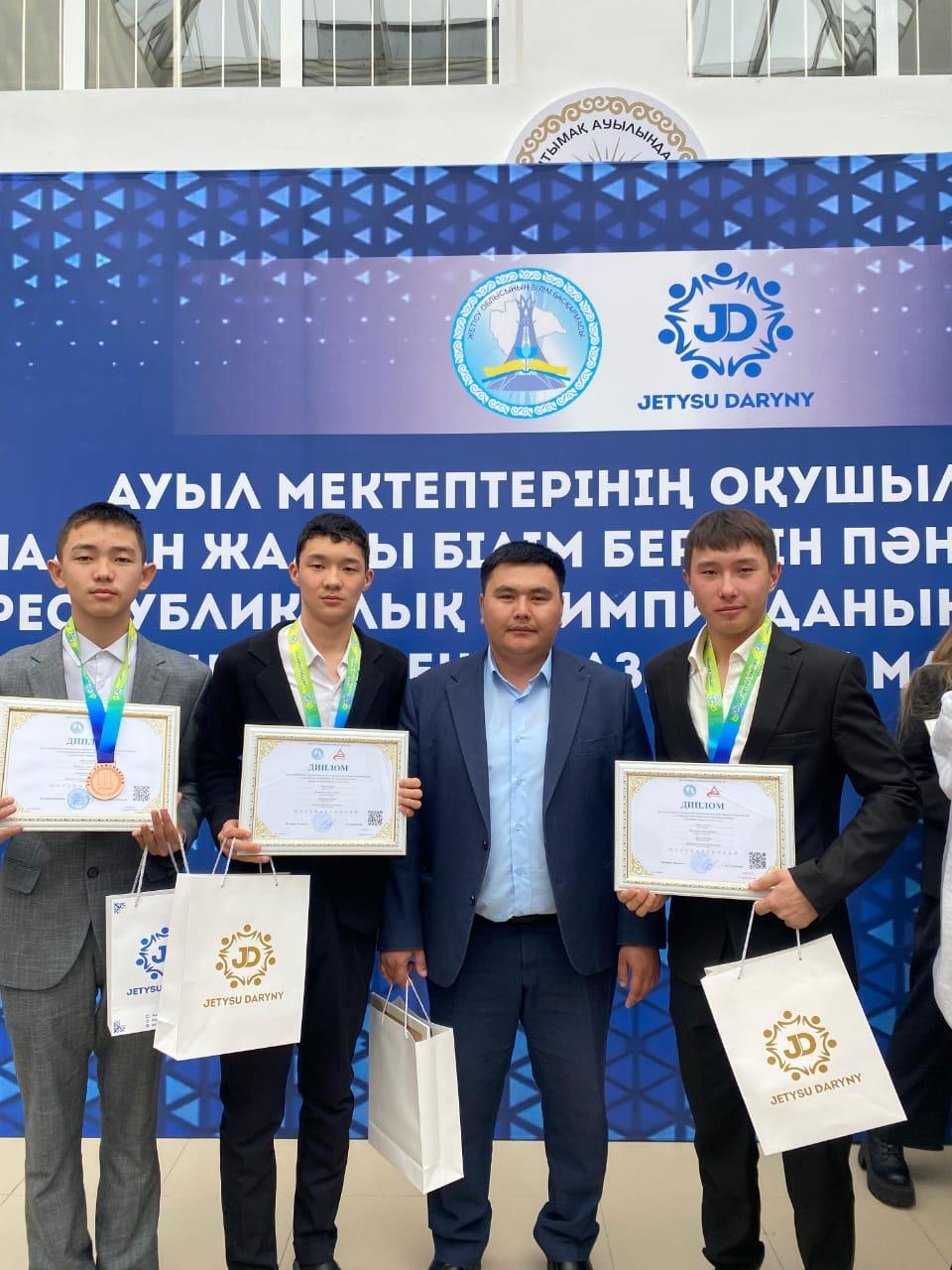 Ауыл мектептерінің оқушыларына арналған жалпы білім беретін пәндер бойынша республикалық олимпиаданың ІІІ (облыстық) кезеңінде Жетіжал орта мектебінің 9-10 сынып оқушылары жүлделі орындармен марапатталып, бағалы сыйлықтарға ие болды. Атап айтсақ, 📌география пәні бойынша - Дуйсен Бекнұр ІІ орын иегері, жетекшісі: Нұрғалиев Ә.Қ. 📌құқық негіздері пәні бойынша - Нурпеисов Жакан ІІ орын иегері, жетекшісі: Фазылов Қ.С. 📌ағылшын тілі пәні бойынша - Акимкожанов Алихан ІІІ орын иегері, жетекшісі: Жүмәділлә Г.С. Шын жүректен құттықтаймыз!!!