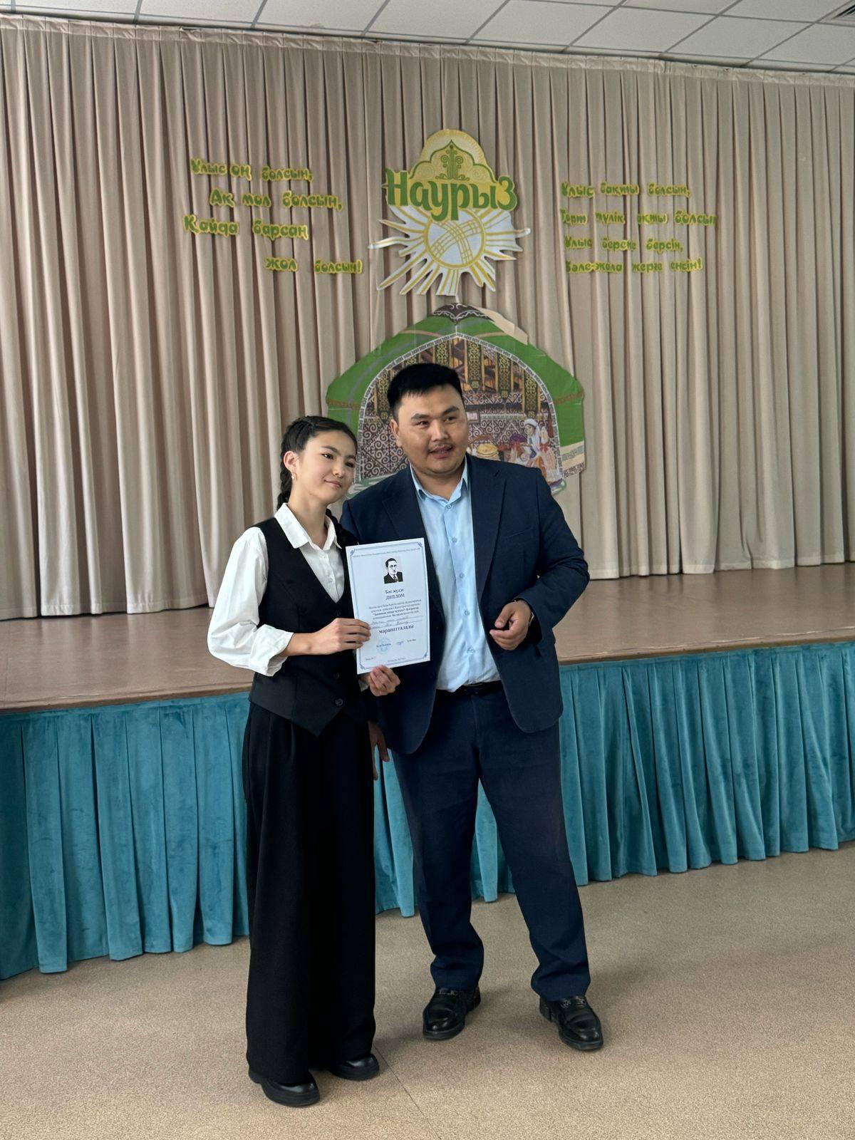 Жалпы білім беретін мектеп оқушыларының арасында аудандық І.Жансүгіров оқуларының "Заманның заңғар тұлғасы" - буктрейлер номинациясы бойынша 9-сынып оқушысы Әбіш Қаракөз қатысып, БАС ЖҮЛДЕ иегері атанды.Жетекшісі: қазақ тілі мен әдебиеті пәні мұғалімі: Сарсенбекова Аяулым Бакытбековна.