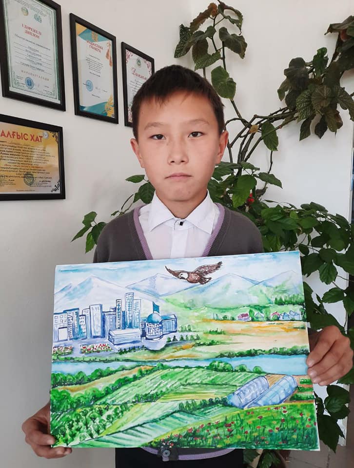 "Menіń Otanym-Qazaqstan" taqyrybynda sýret salǵan oqýshymyz-Dúısen Beknur.6-synyp oqýshysy.Muǵalіmі:Imantaeva S.T. "Менің Отаным-Қазақстан" тақырыбында сурет салған оқушымыз-Дүйсен Бекнұр.6-сынып оқушысы.Мұғалімі:Имантаева С.Т. » Көксу ауданы Жетіжал орта мектебі