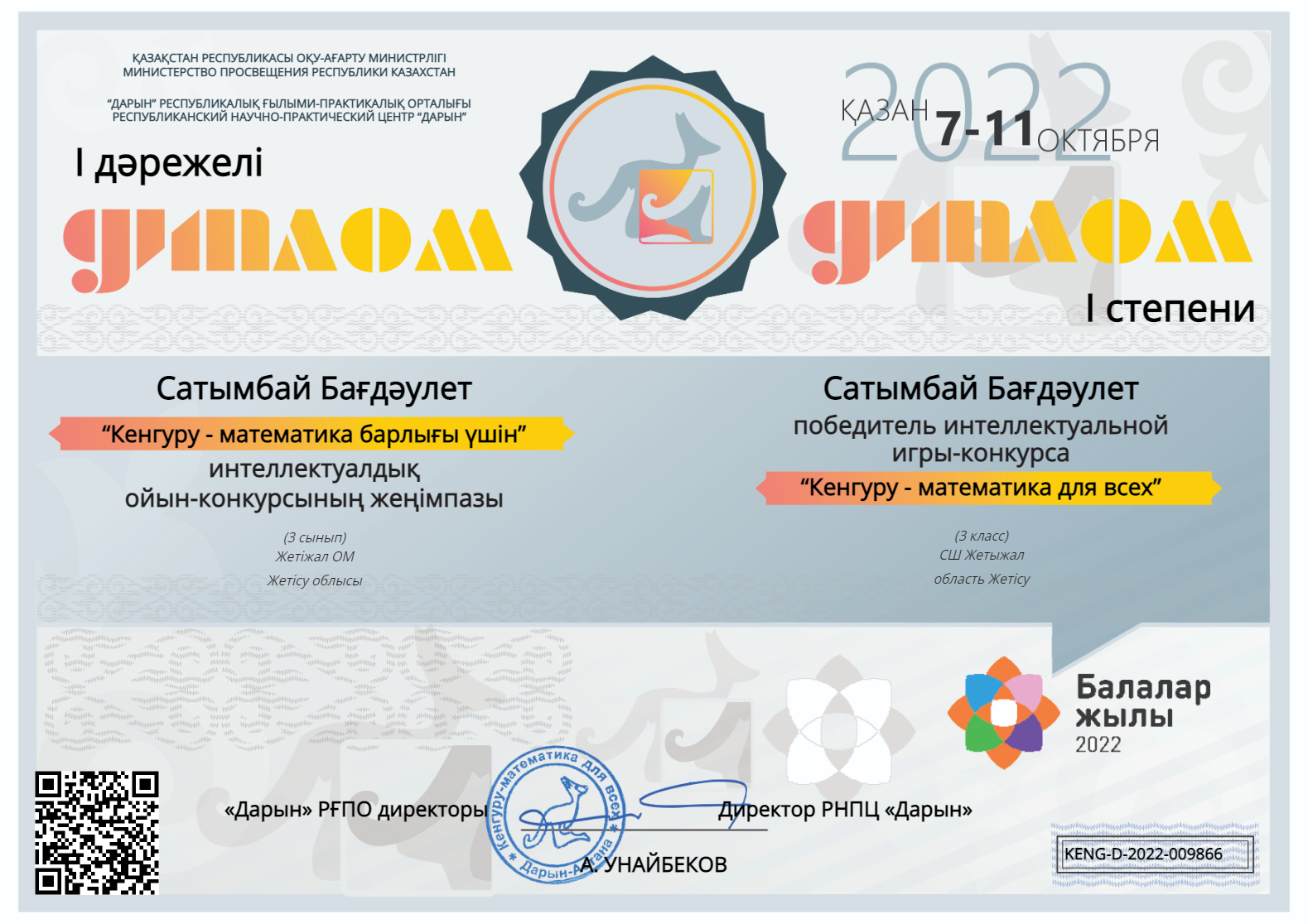"Кенгуру - математика барлығы үшін" - 2022 » Көксу ауданы Жетіжал орта мектебі