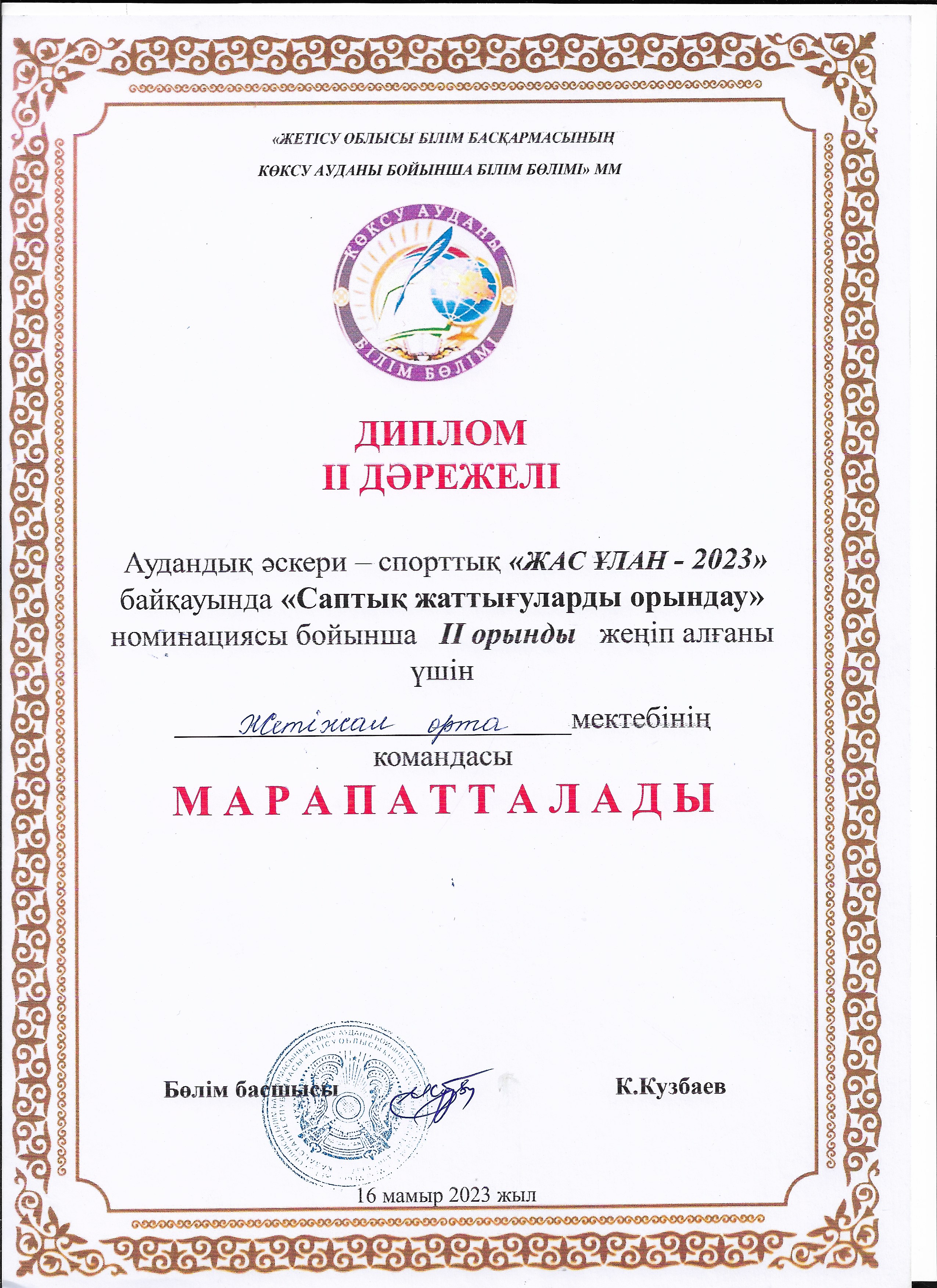 Аудандық әскери - спорттық "ЖАС ҰЛАН - 2023" байқауы » Көксу ауданы Жетіжал орта мектебі