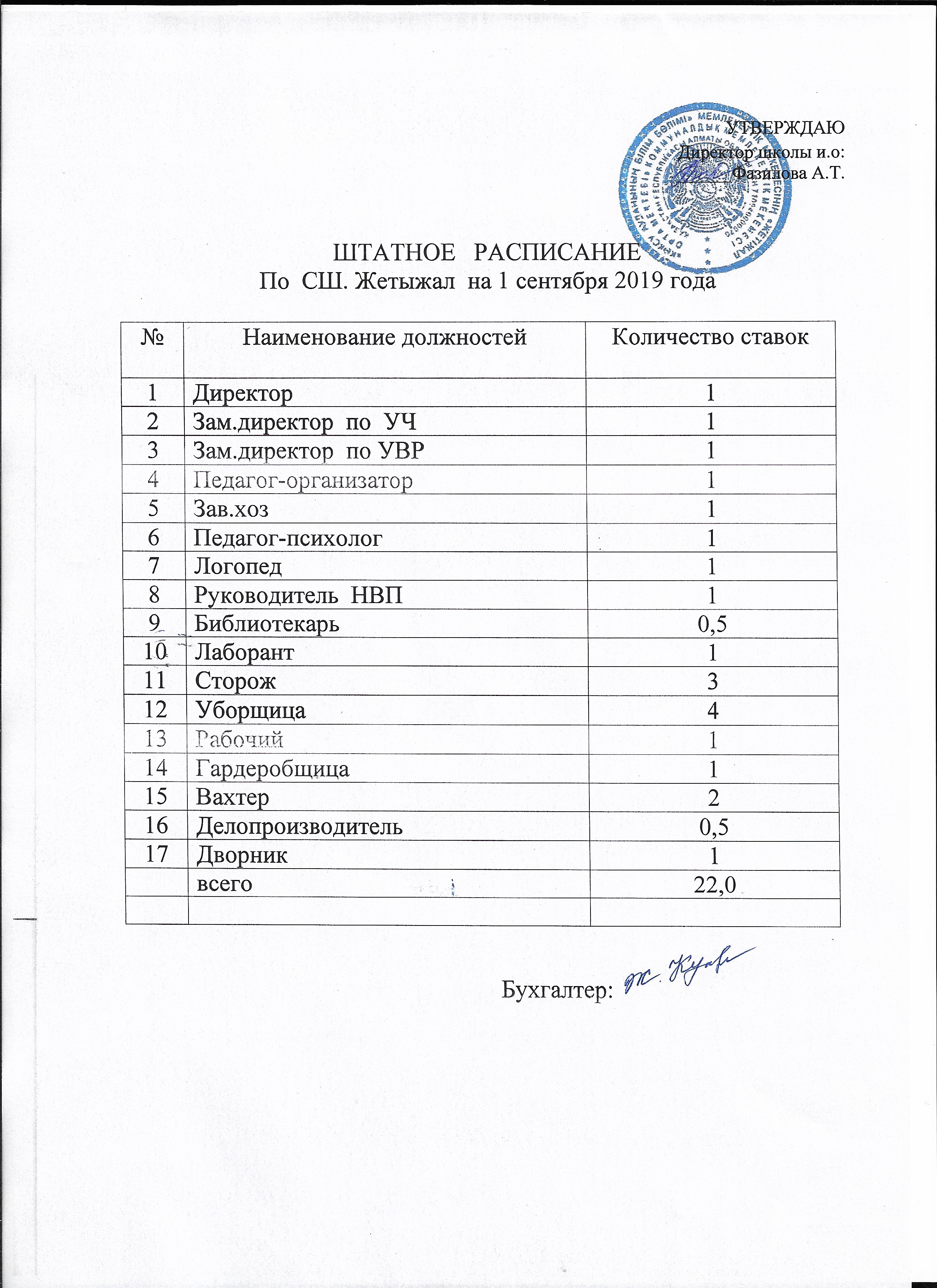 штаттық кесте - 2019 » Көксу ауданы Жетіжал орта мектебі
