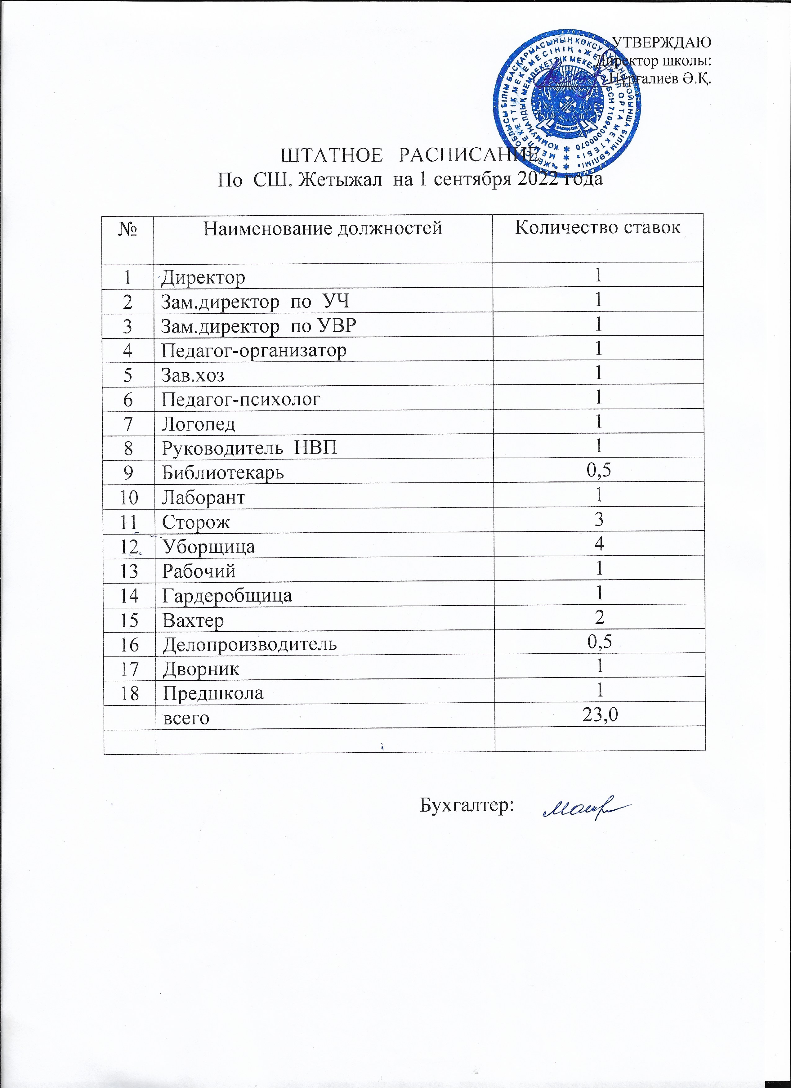 штаттық кесте - 2022 » Көксу ауданы Жетіжал орта мектебі