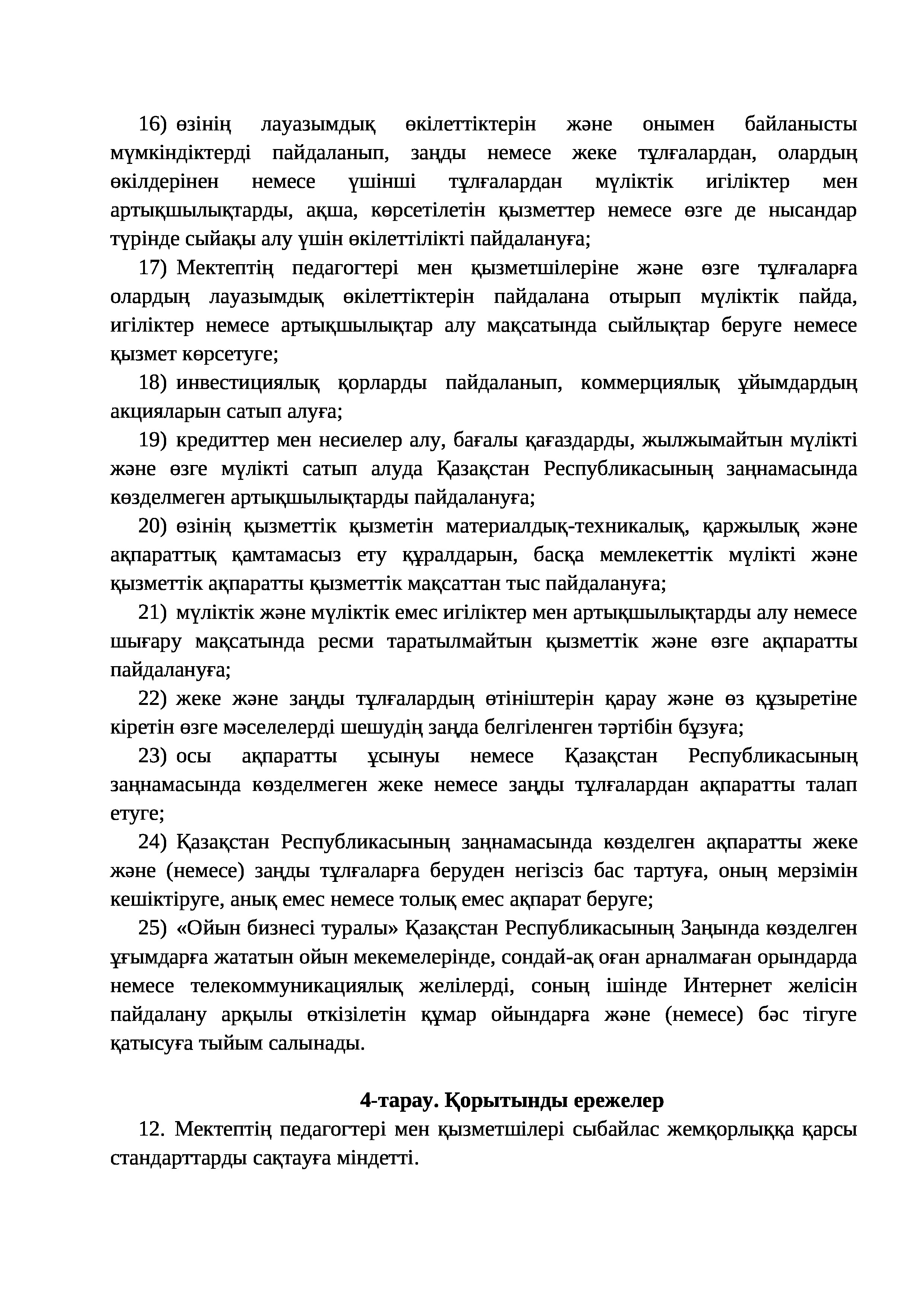 » » » Сыбайлас жемқорлыққа қарсы стандарттын ережесі