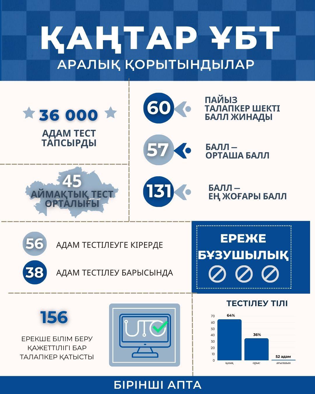 ⏳Қаңтар ҰБТ-сы басталғалы бері 36 мың адам тест тапсырды.