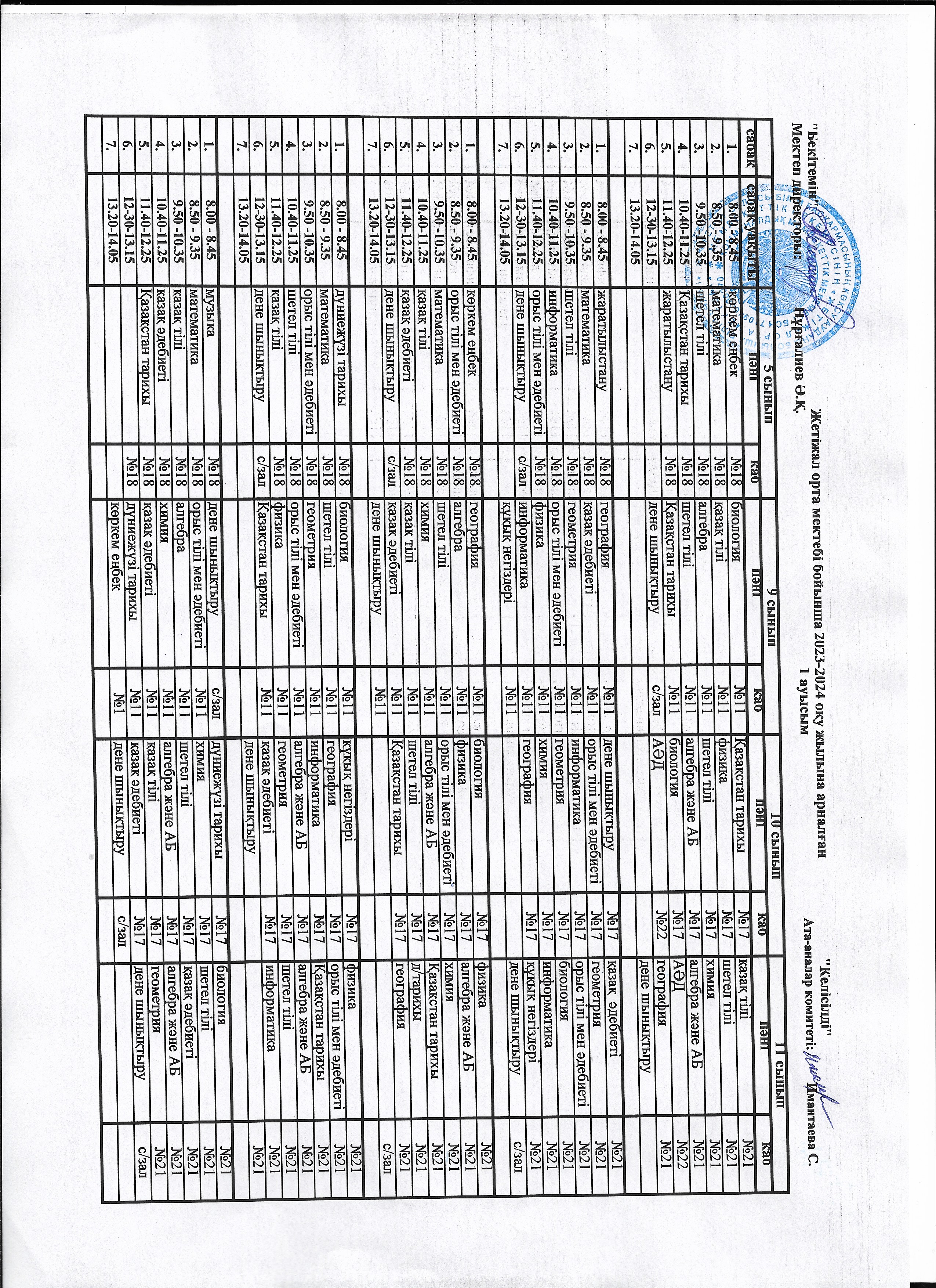 Сабақ кестесі І жартыжылдық. 2023-2024 оқу жылы » Көксу ауданы Жетіжал орта мектебі