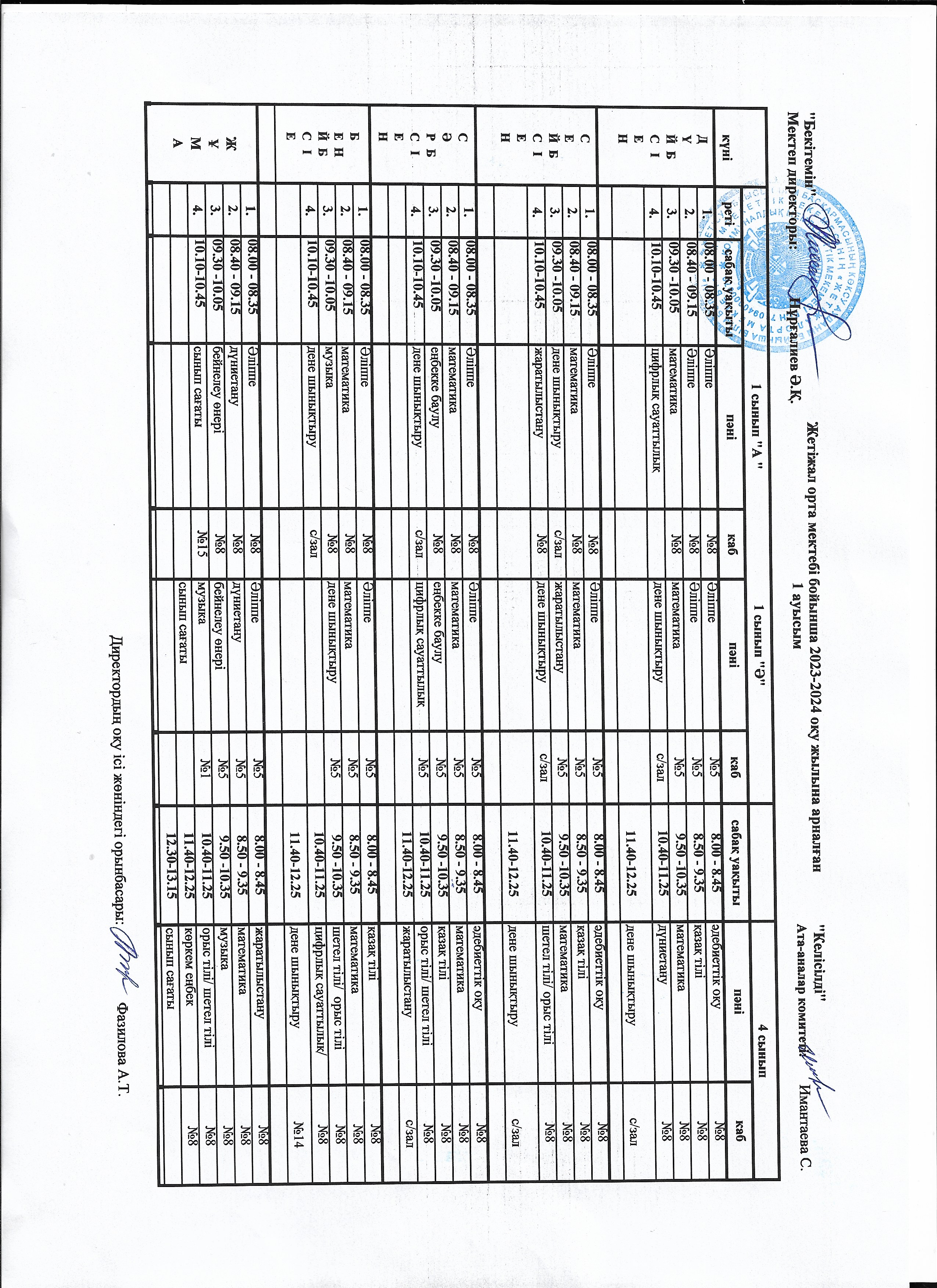 Сабақ кестесі І жартыжылдық. 2023-2024 оқу жылы