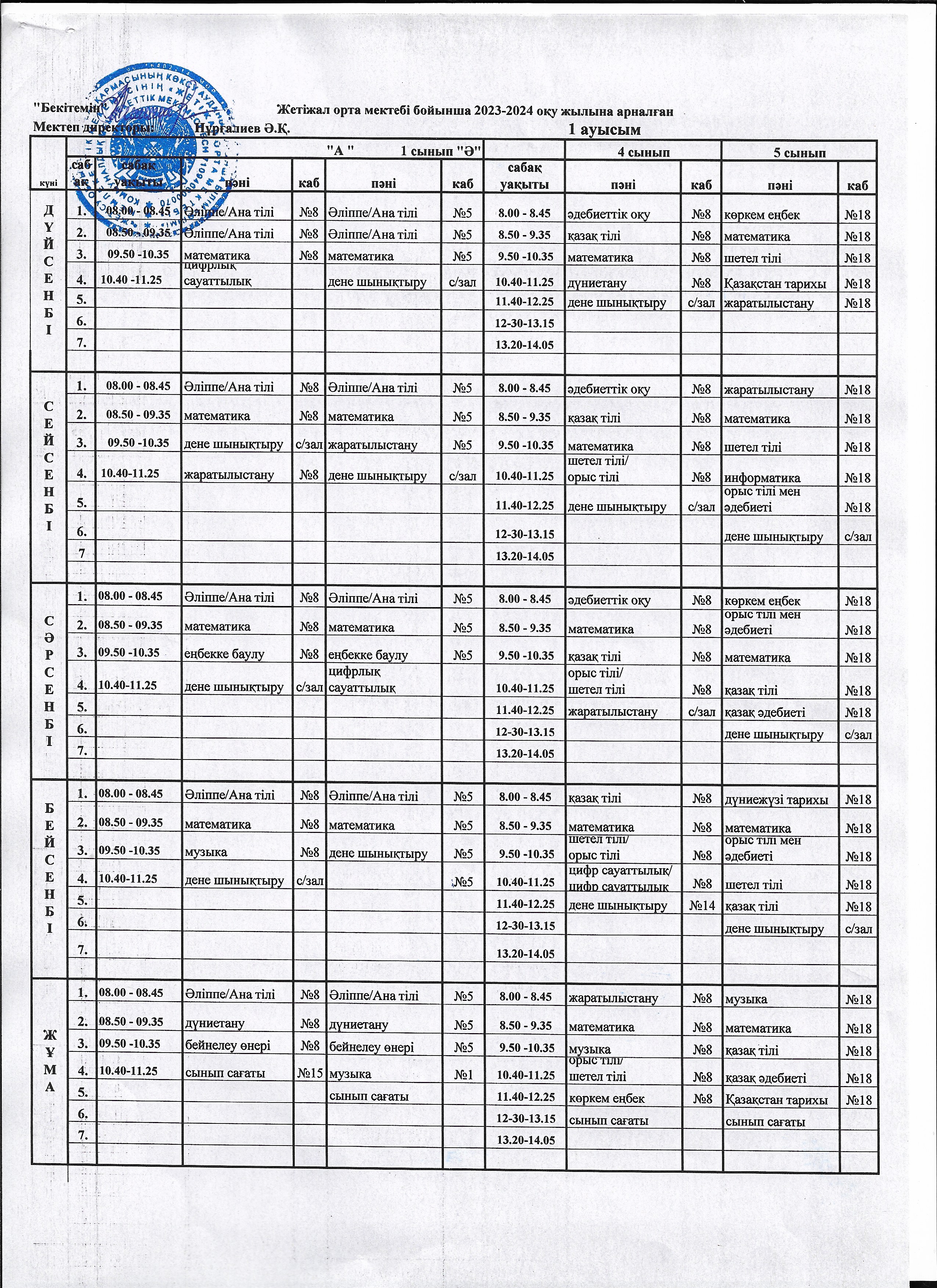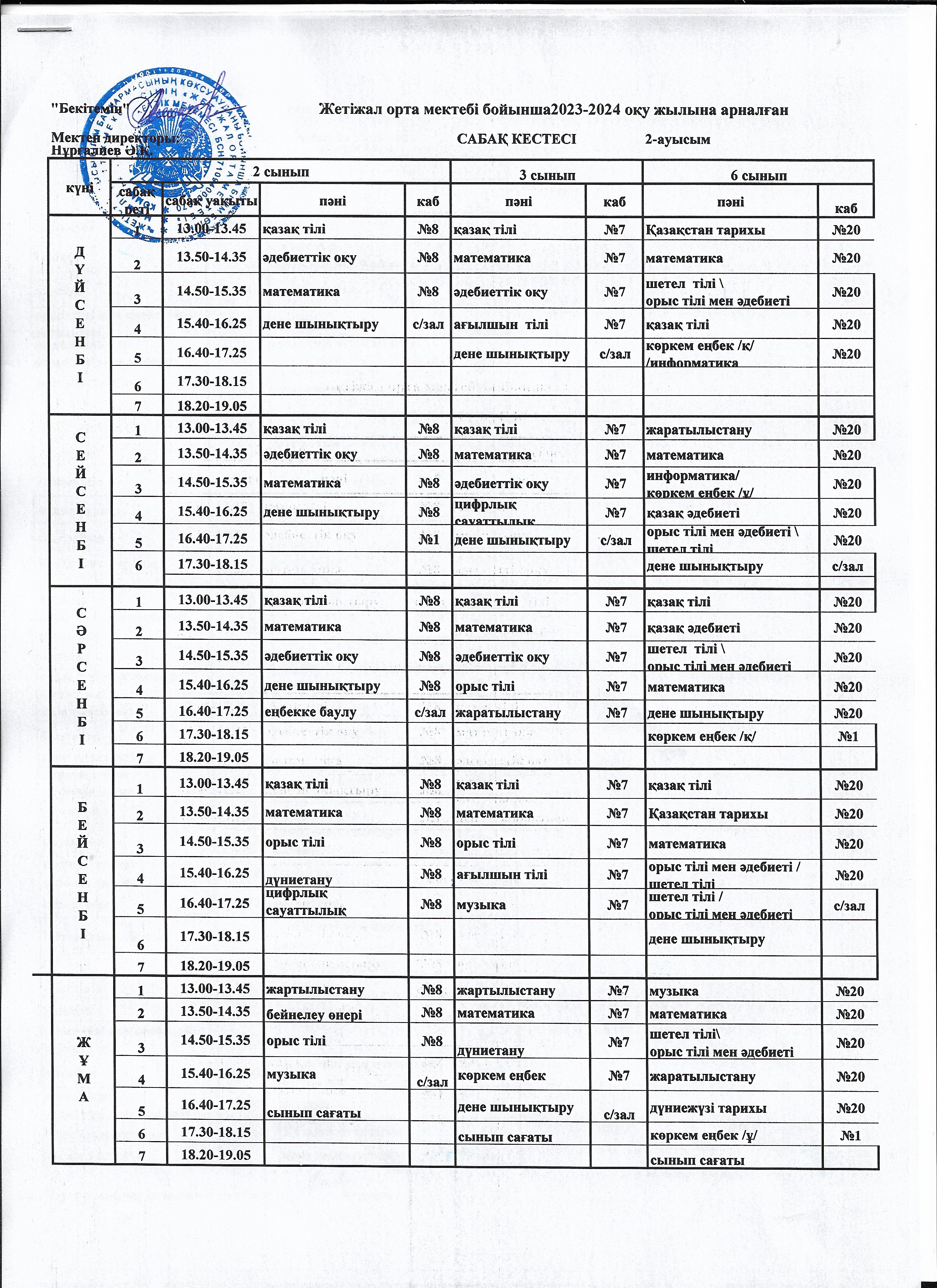 Сабақ кестесі ІІ жартыжылдық. 2023-2024 оқу жылы » Көксу ауданы Жетіжал орта мектебі