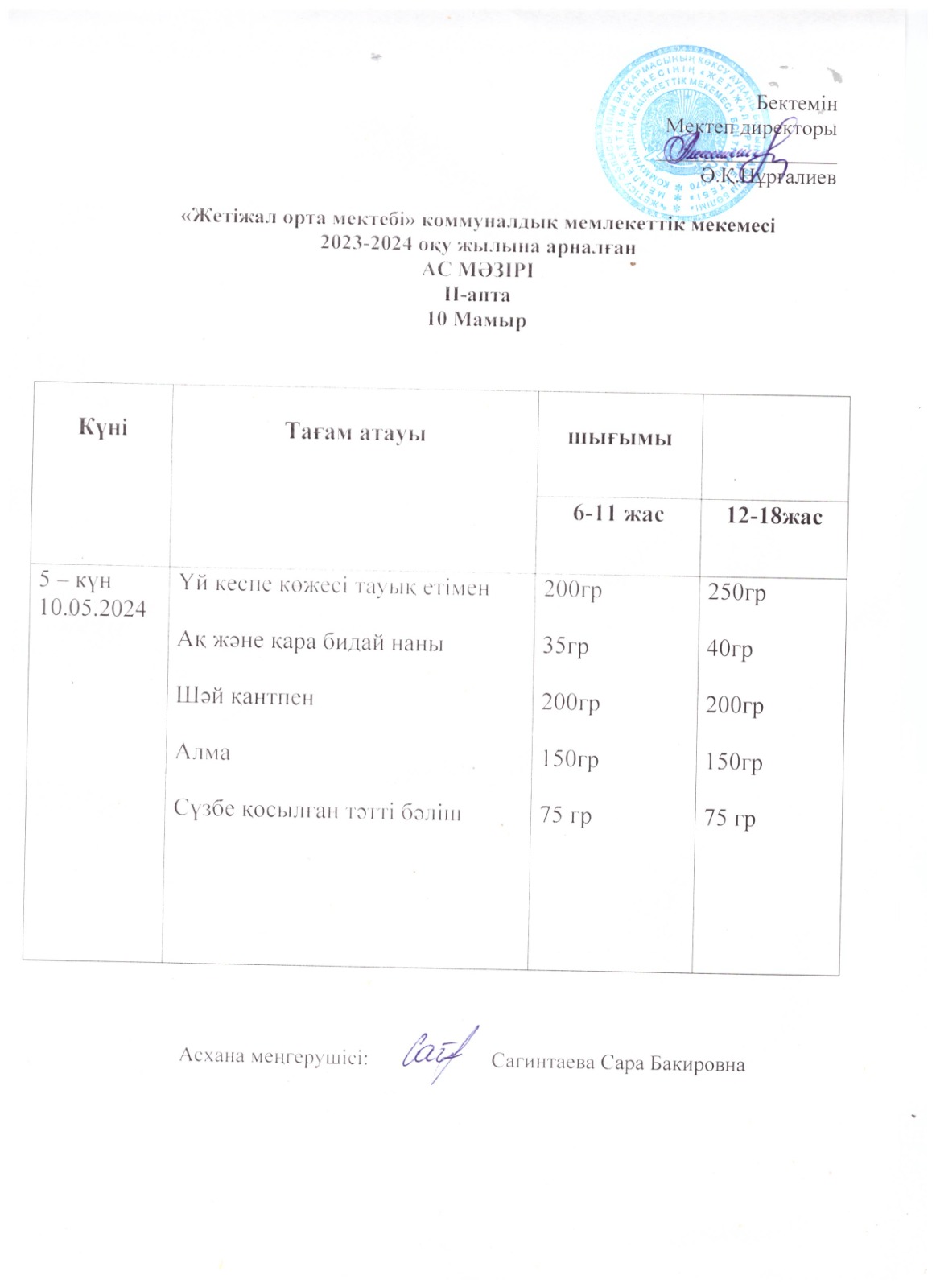 Ас мәзірі 10.05.2024ж » Көксу ауданы Жетіжал орта мектебі