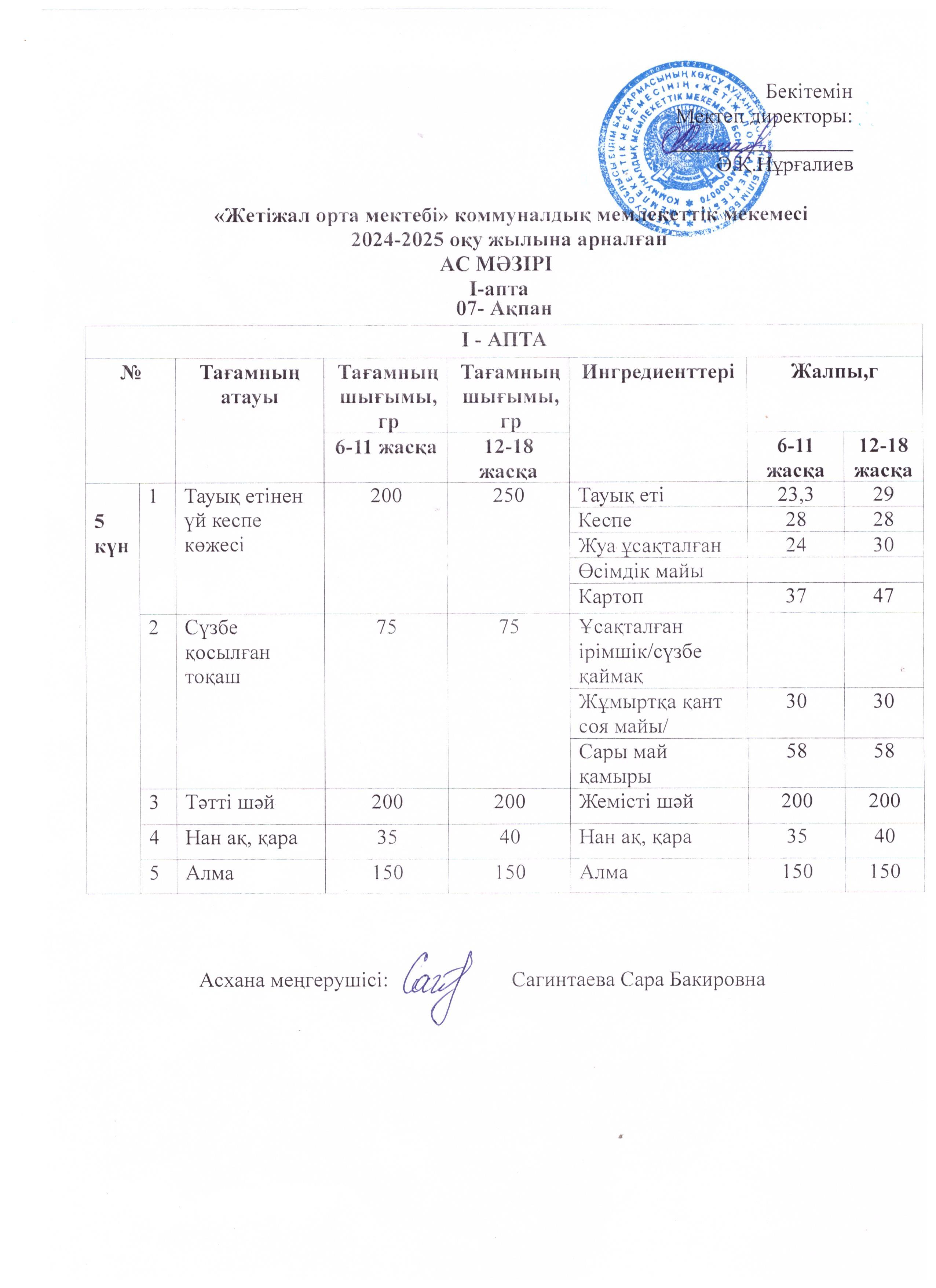 Ас мәзірі 07.02.2025ж » Көксу ауданы Жетіжал орта мектебі