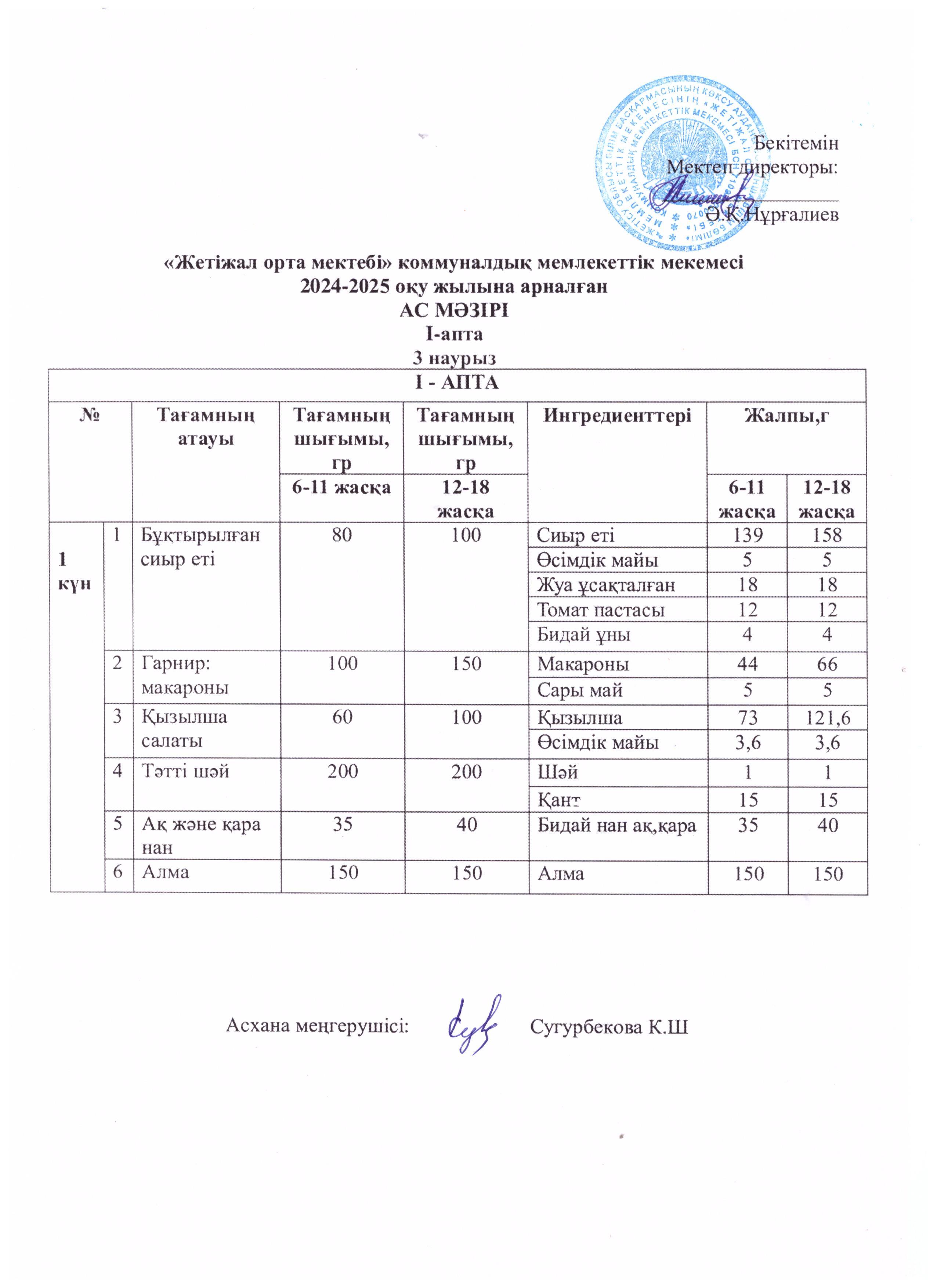 Ас мәзірі 03.03.2025ж » Көксу ауданы Жетіжал орта мектебі