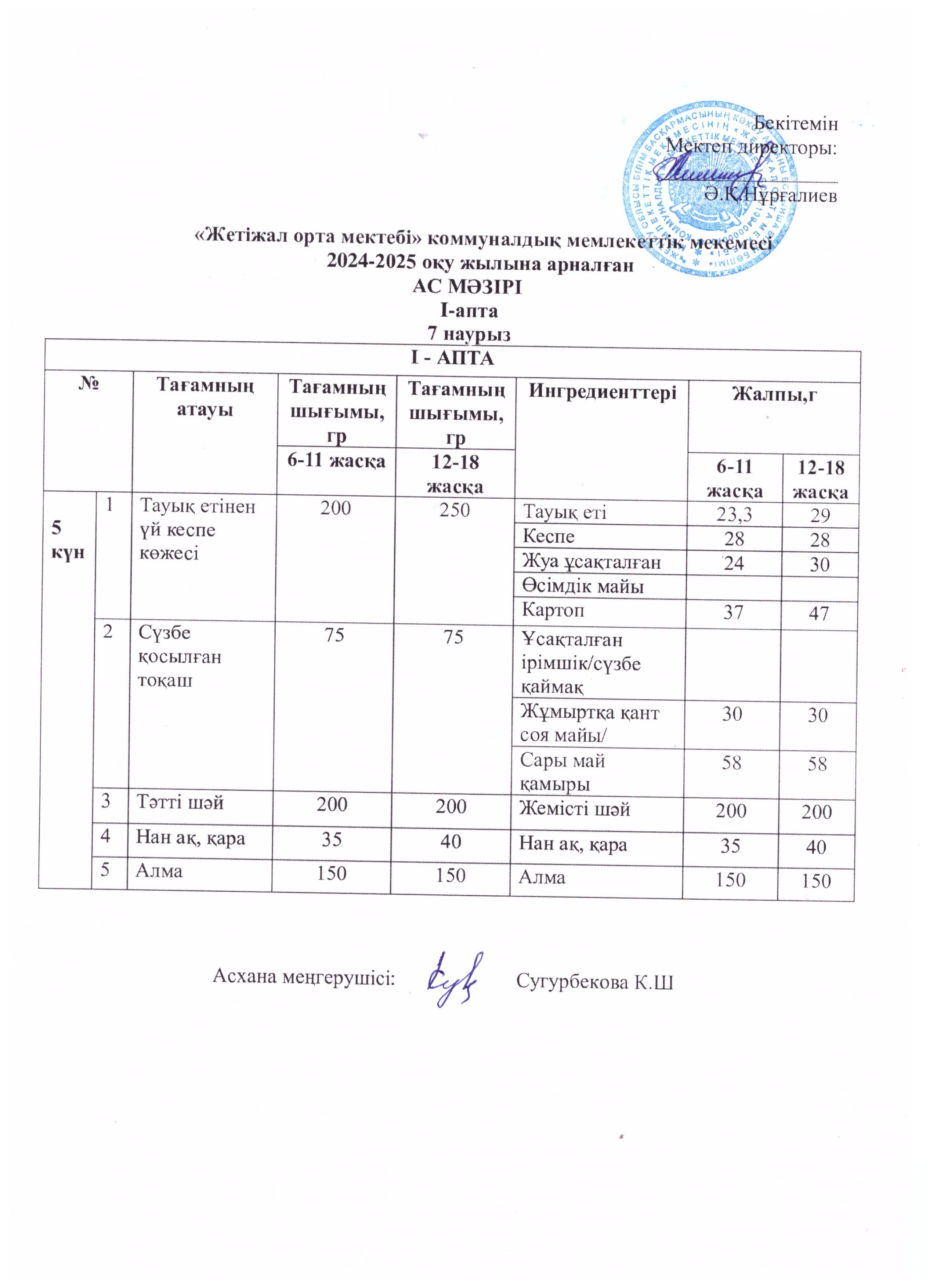 Ас мәзірі 07.03.2025ж » Көксу ауданы Жетіжал орта мектебі
