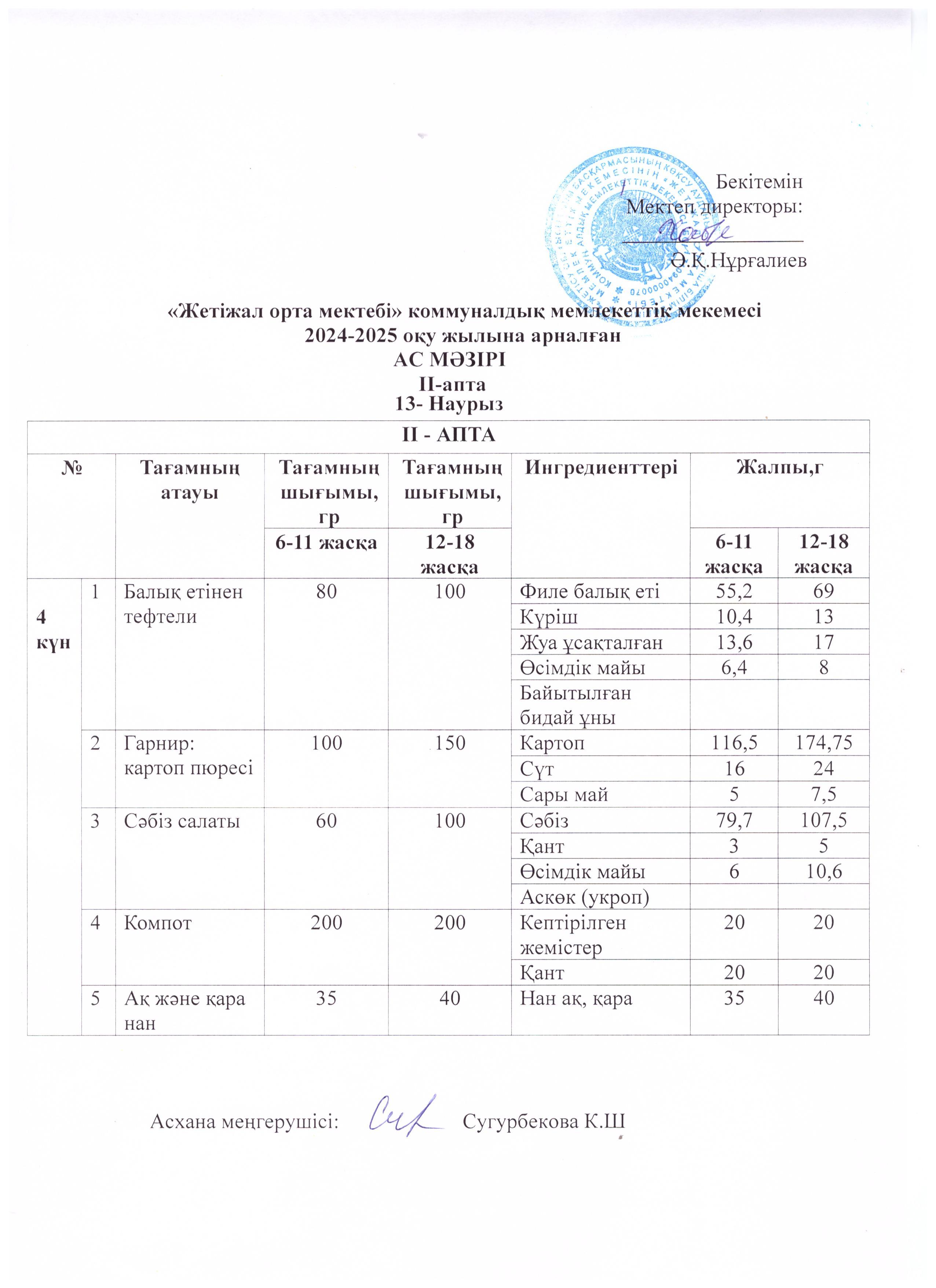 Ас мәзірі 13.03.2025ж » Көксу ауданы Жетіжал орта мектебі