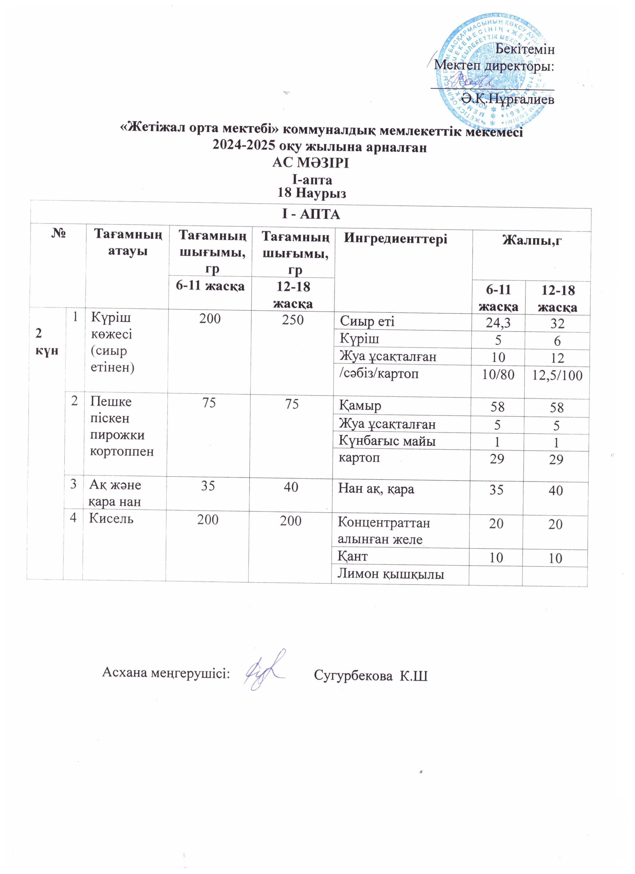 Ас мәзірі 18.03.2025ж » Көксу ауданы Жетіжал орта мектебі