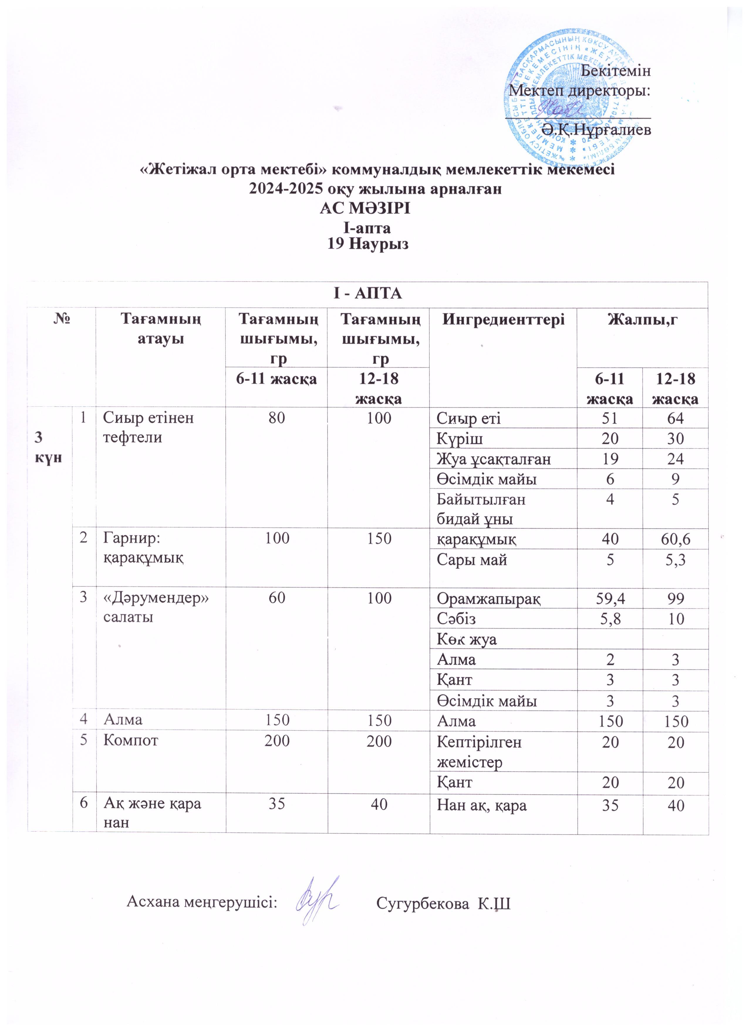 Ас мәзірі 19.03.2025ж » Көксу ауданы Жетіжал орта мектебі