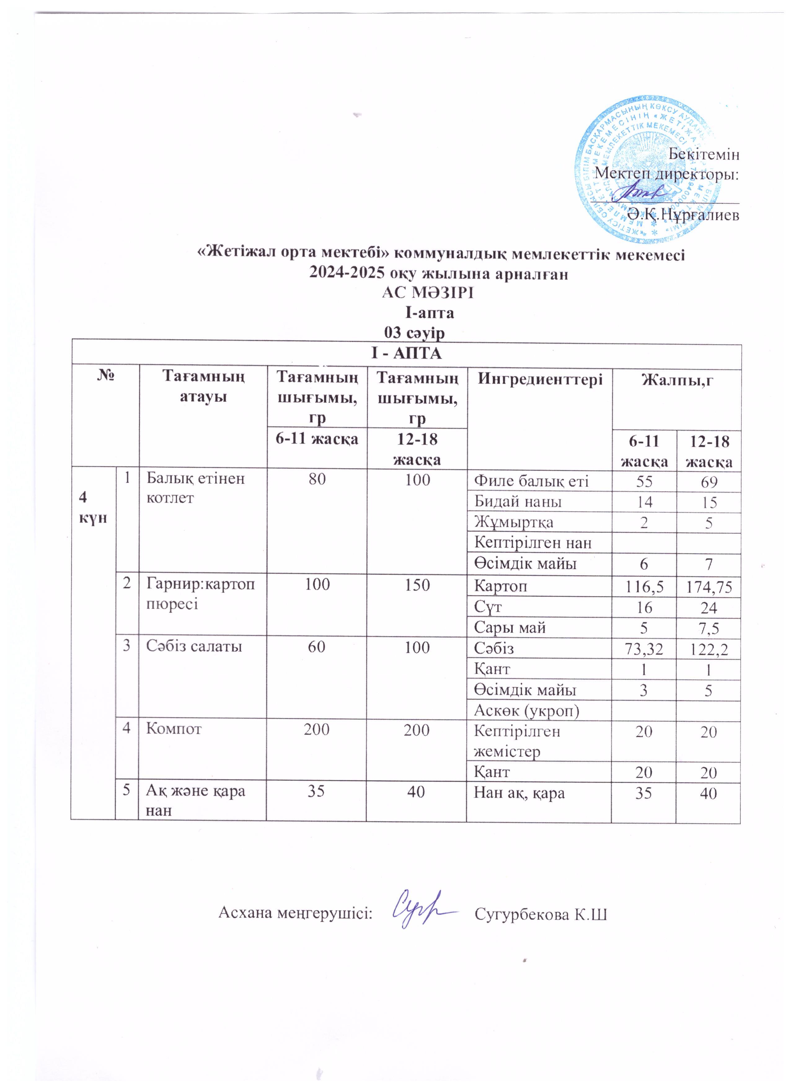 Ас мәзірі 03.04.2025ж » Көксу ауданы Жетіжал орта мектебі