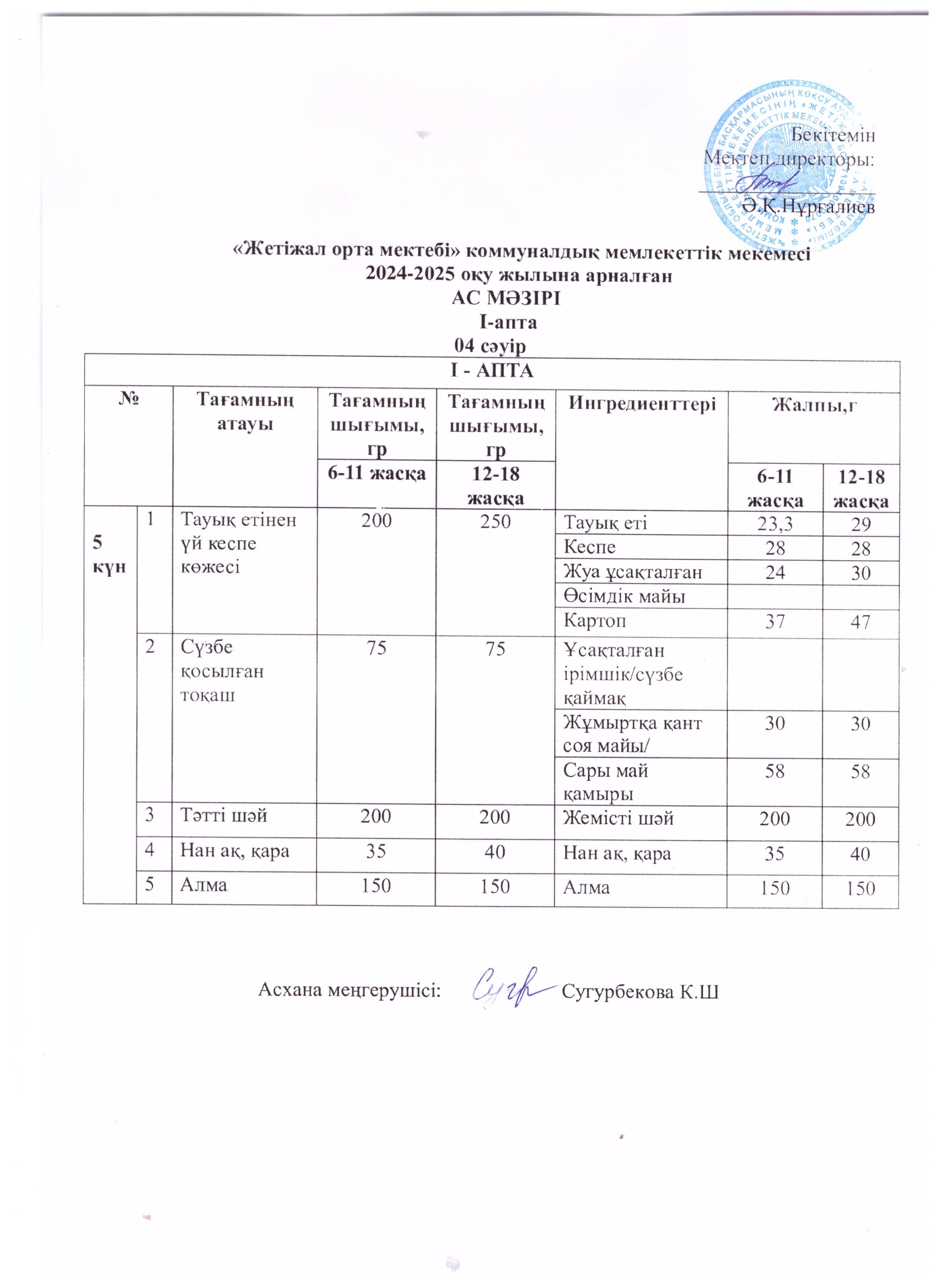 Ас мәзірі 04.04.2025ж » Көксу ауданы Жетіжал орта мектебі