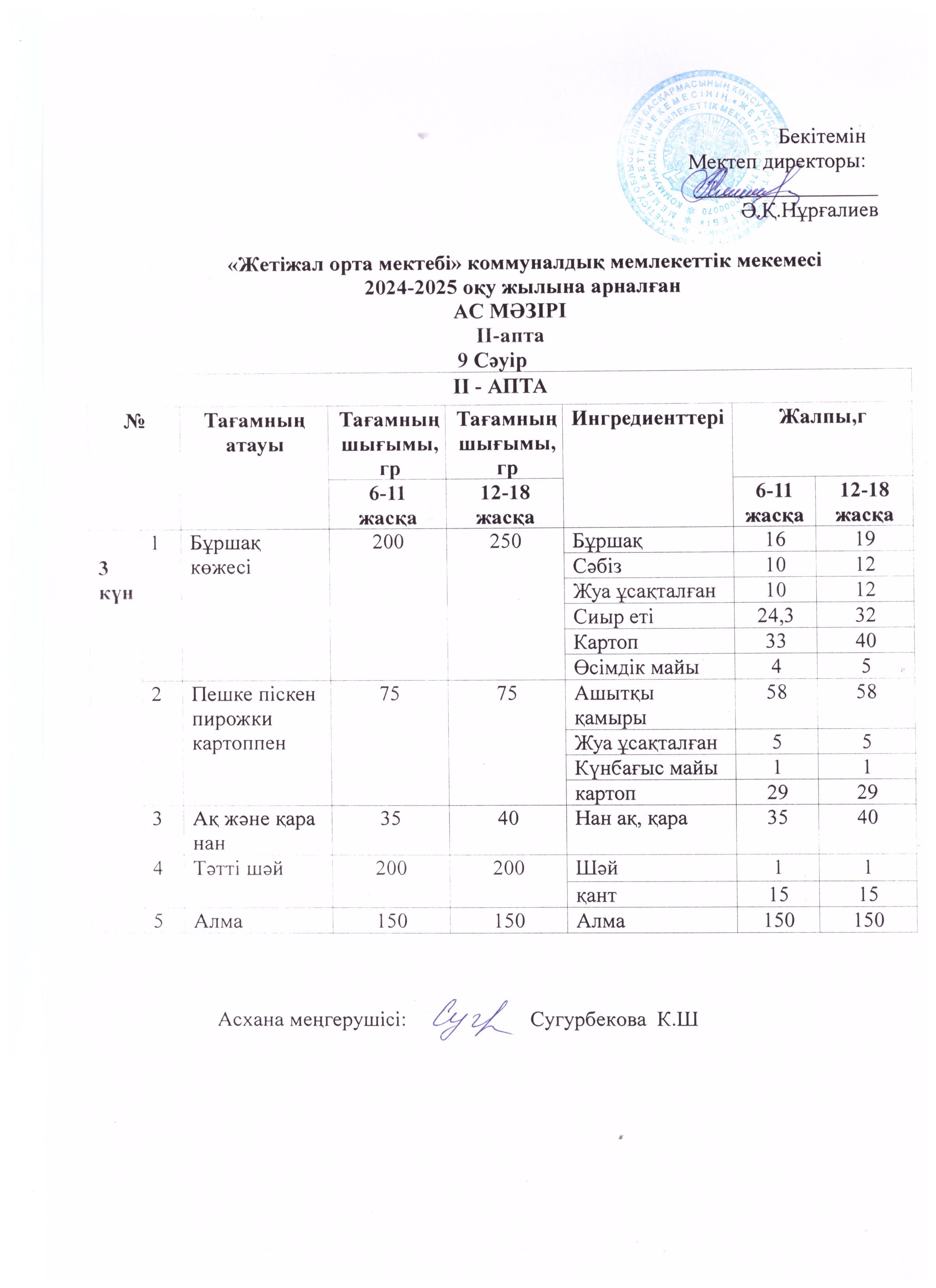 Ас мәзірі 09.04.2025ж » Көксу ауданы Жетіжал орта мектебі