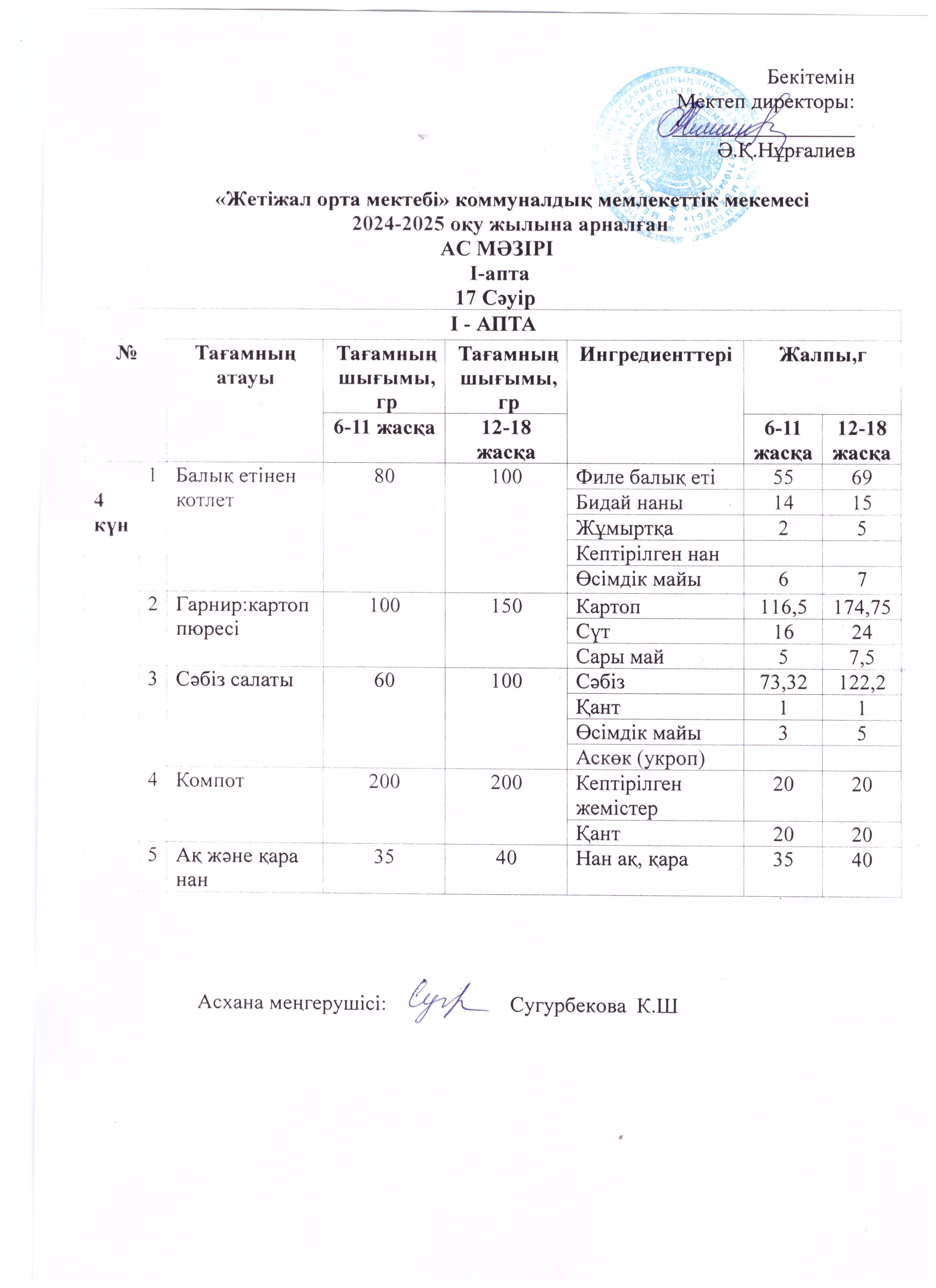 Ас мәзірі 17.04.2025ж » Көксу ауданы Жетіжал орта мектебі