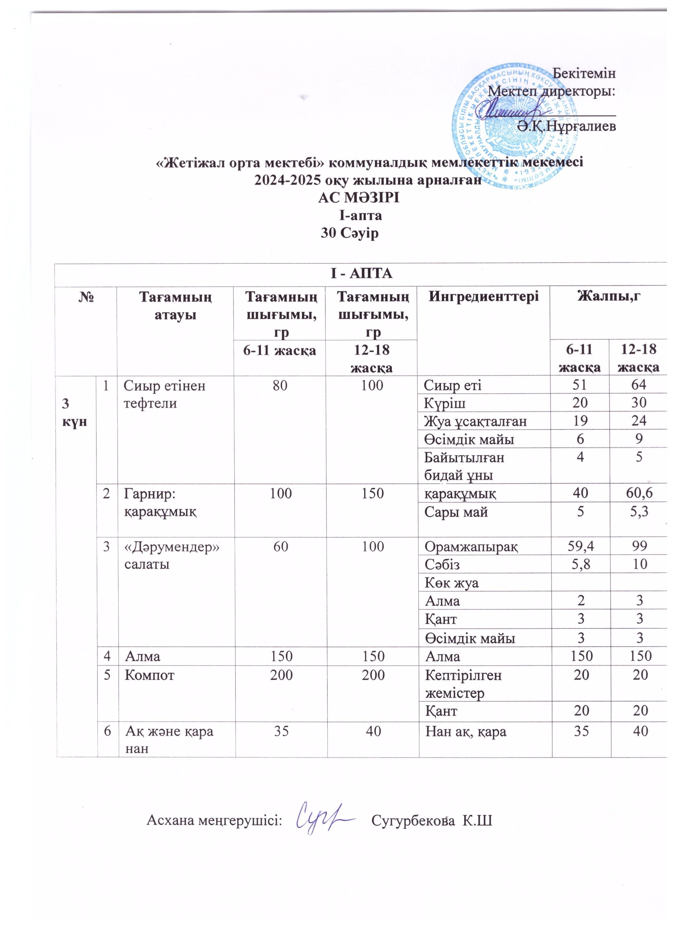 Ас мәзірі 30.04.2025ж » Көксу ауданы Жетіжал орта мектебі