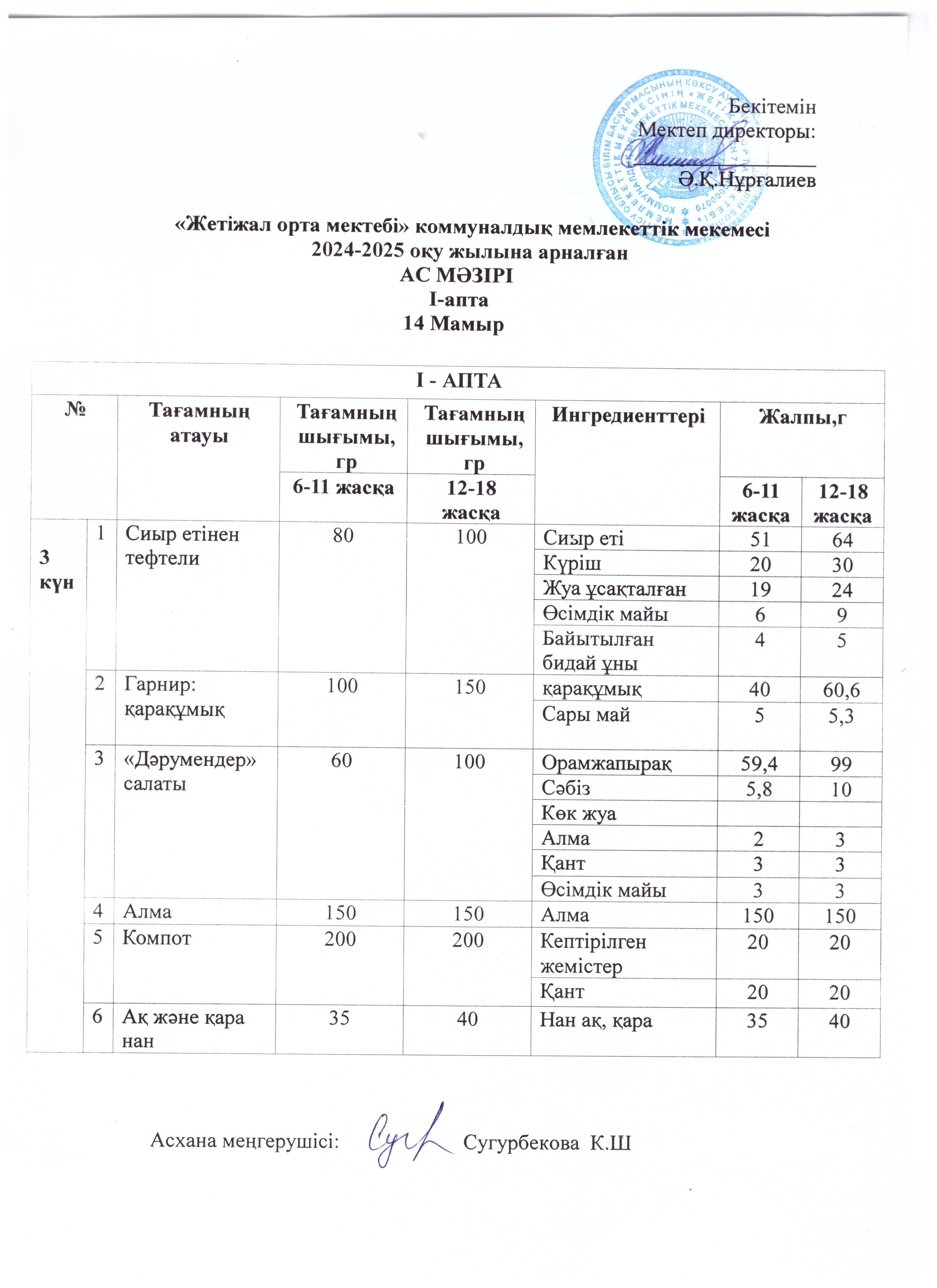 Ас мәзірі 14.05.2025ж » Көксу ауданы Жетіжал орта мектебі