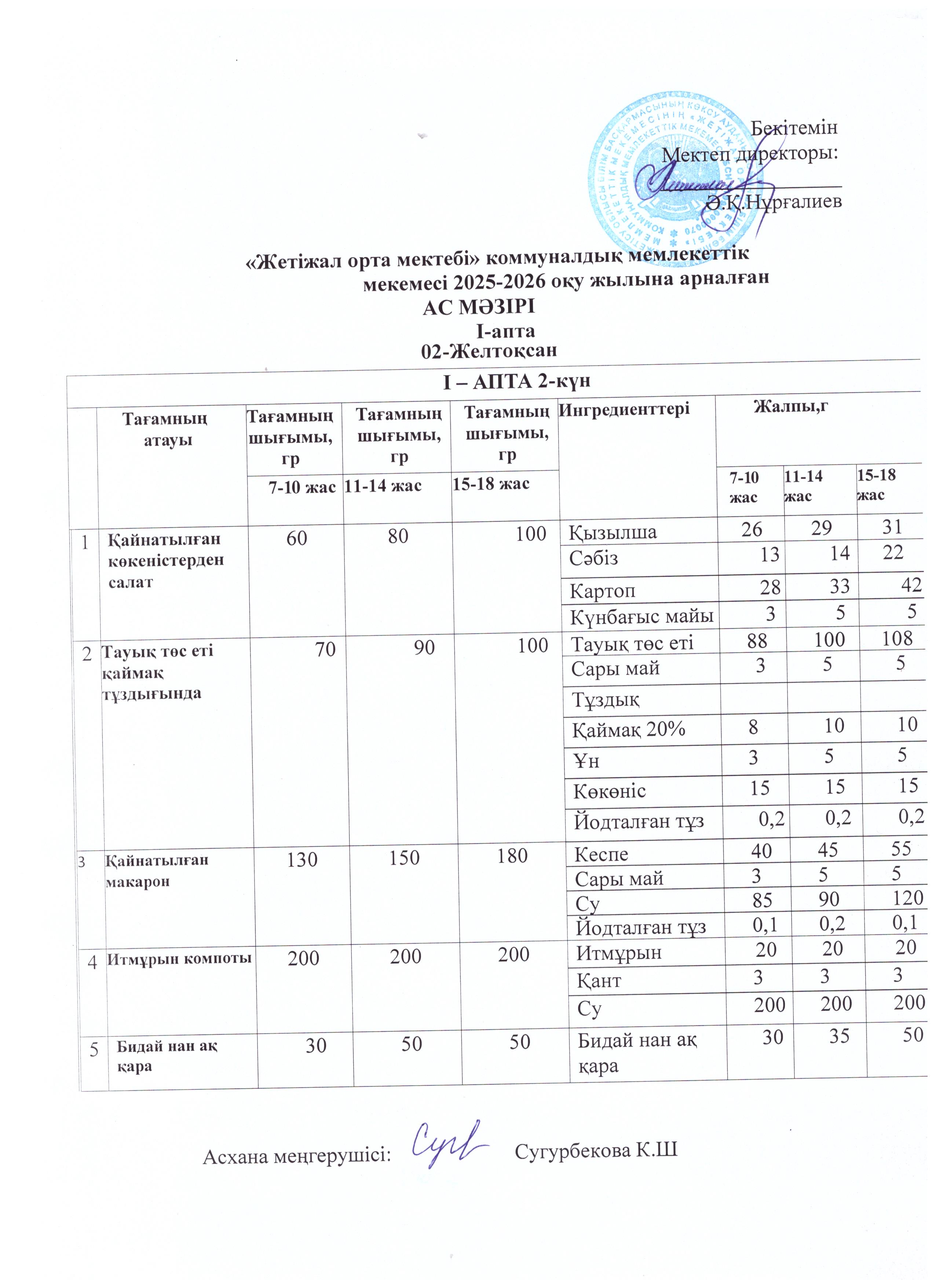 Ас мәзірі 02.12.2025ж » Көксу ауданы Жетіжал орта мектебі