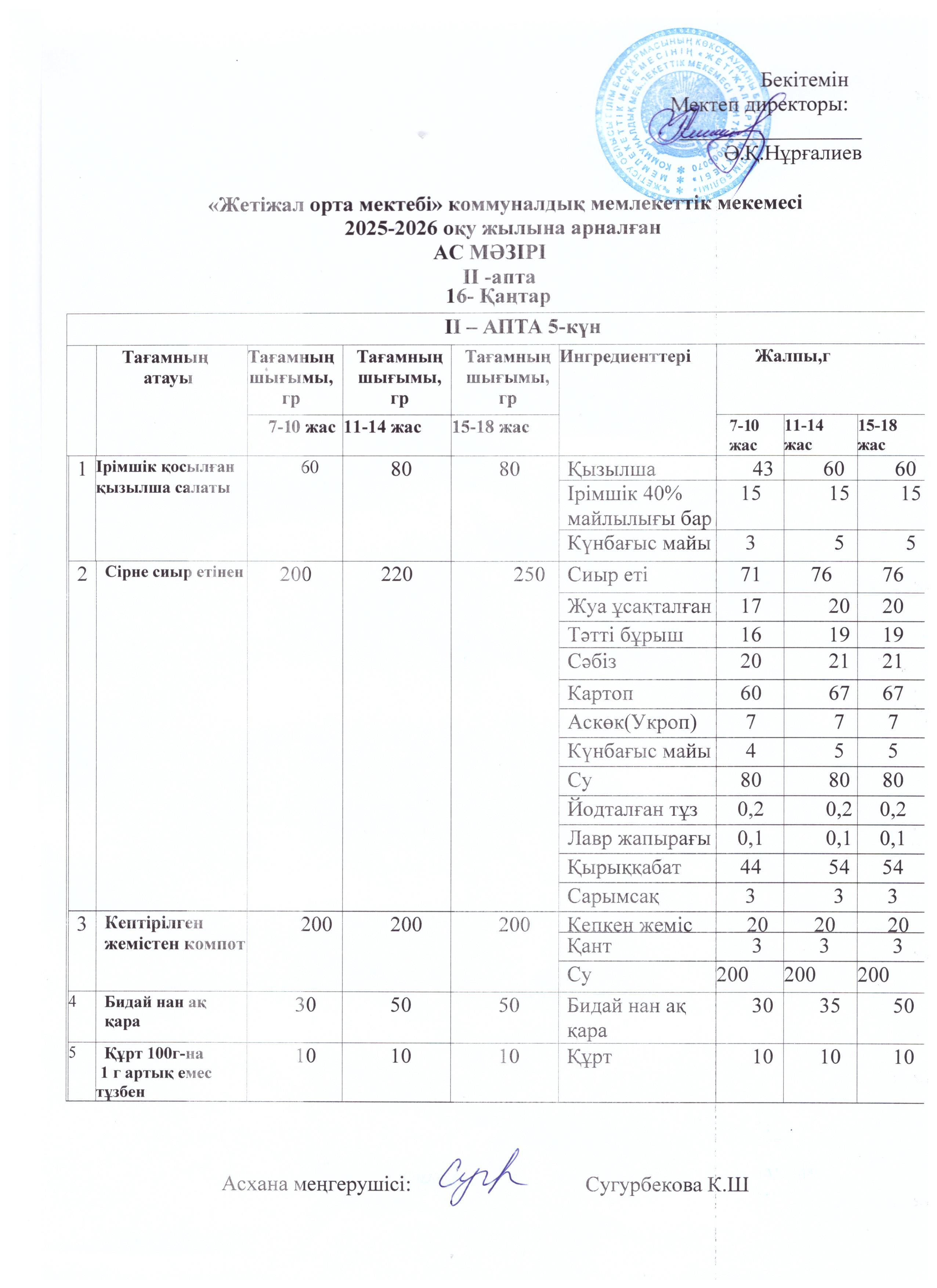 Ас мәзірі 16.01.2026ж » Көксу ауданы Жетіжал орта мектебі
