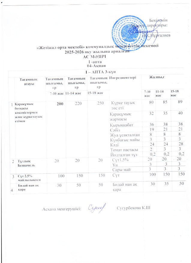 Ас мәзірі 04.02.2026ж » Көксу ауданы Жетіжал орта мектебі
