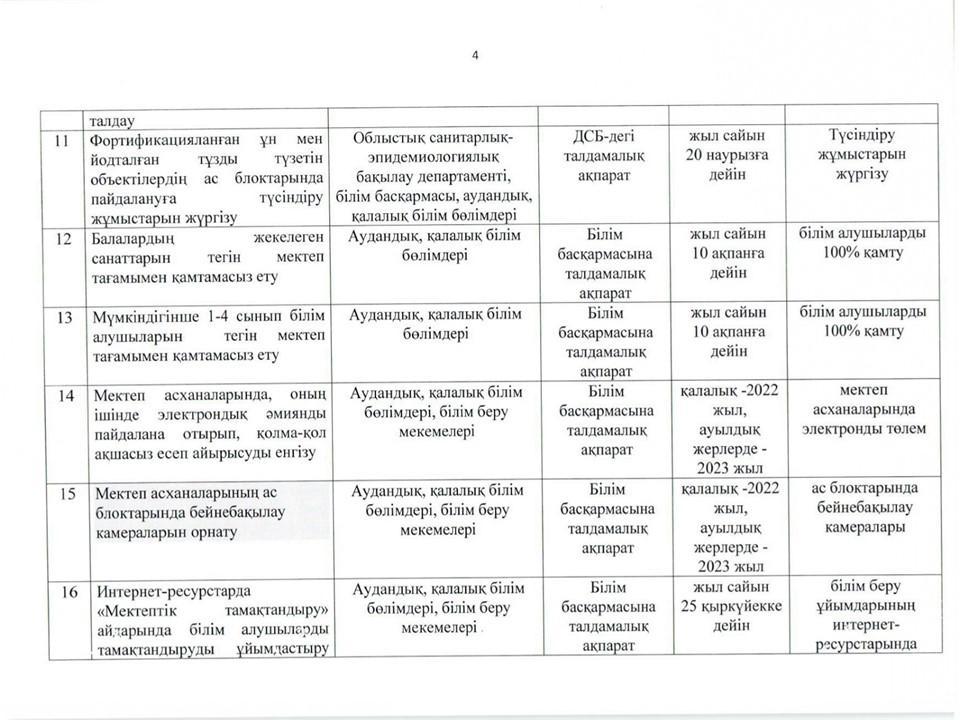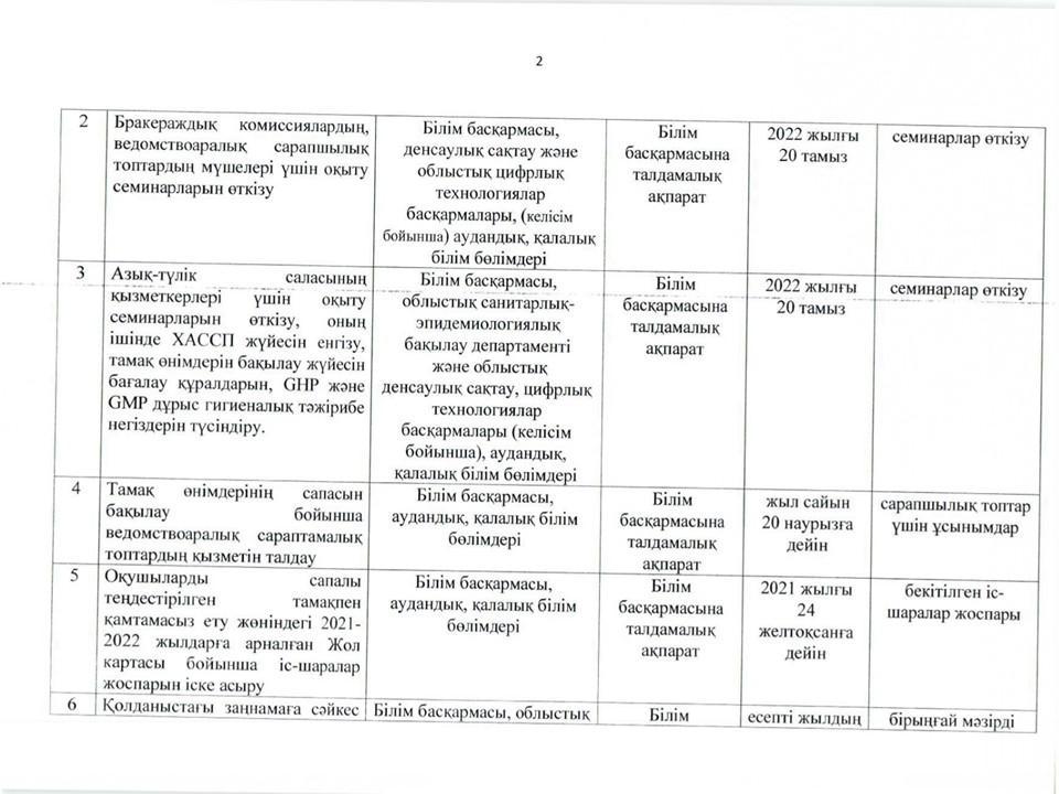 15 декабрь 2021 0 1 2 3 4 5 Мектеп оқушыларын сапалы теңдестірілген тамақтанумен қамтамасыз етудің 2021-2023 жылдарға арналған ЖОЛ КАРТАСЫ
