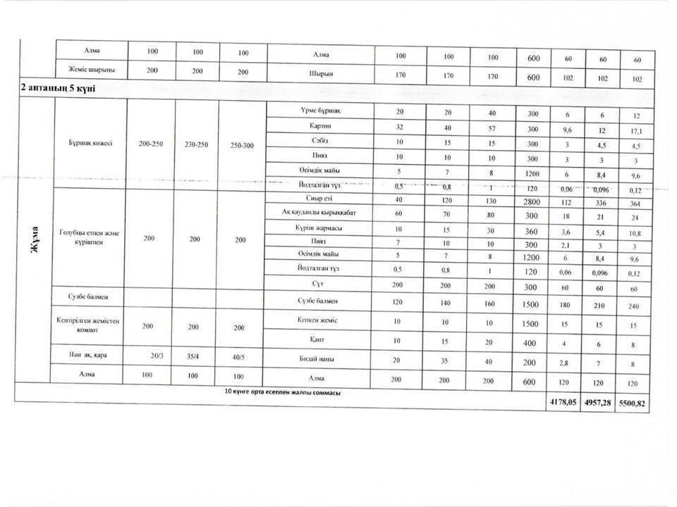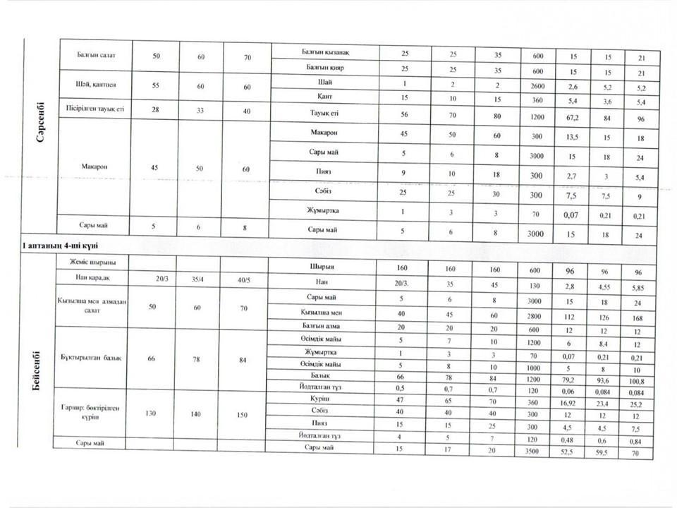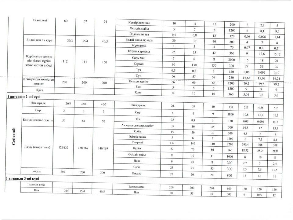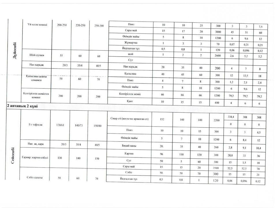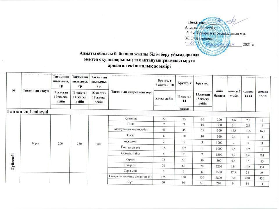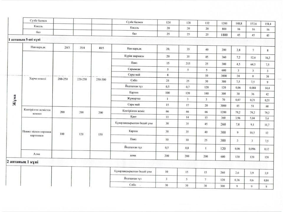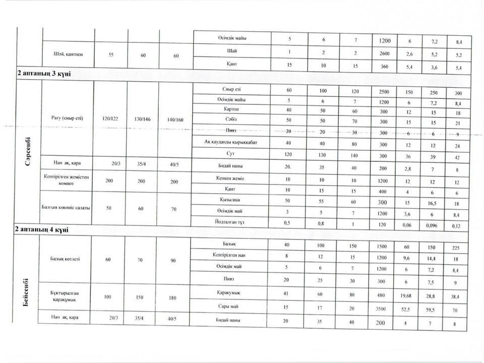 Оқушылардың тамақтануын ұйымдастыруға арналған екі апталық ас мәзірі » Көксу ауданы Жетіжал орта мектебі