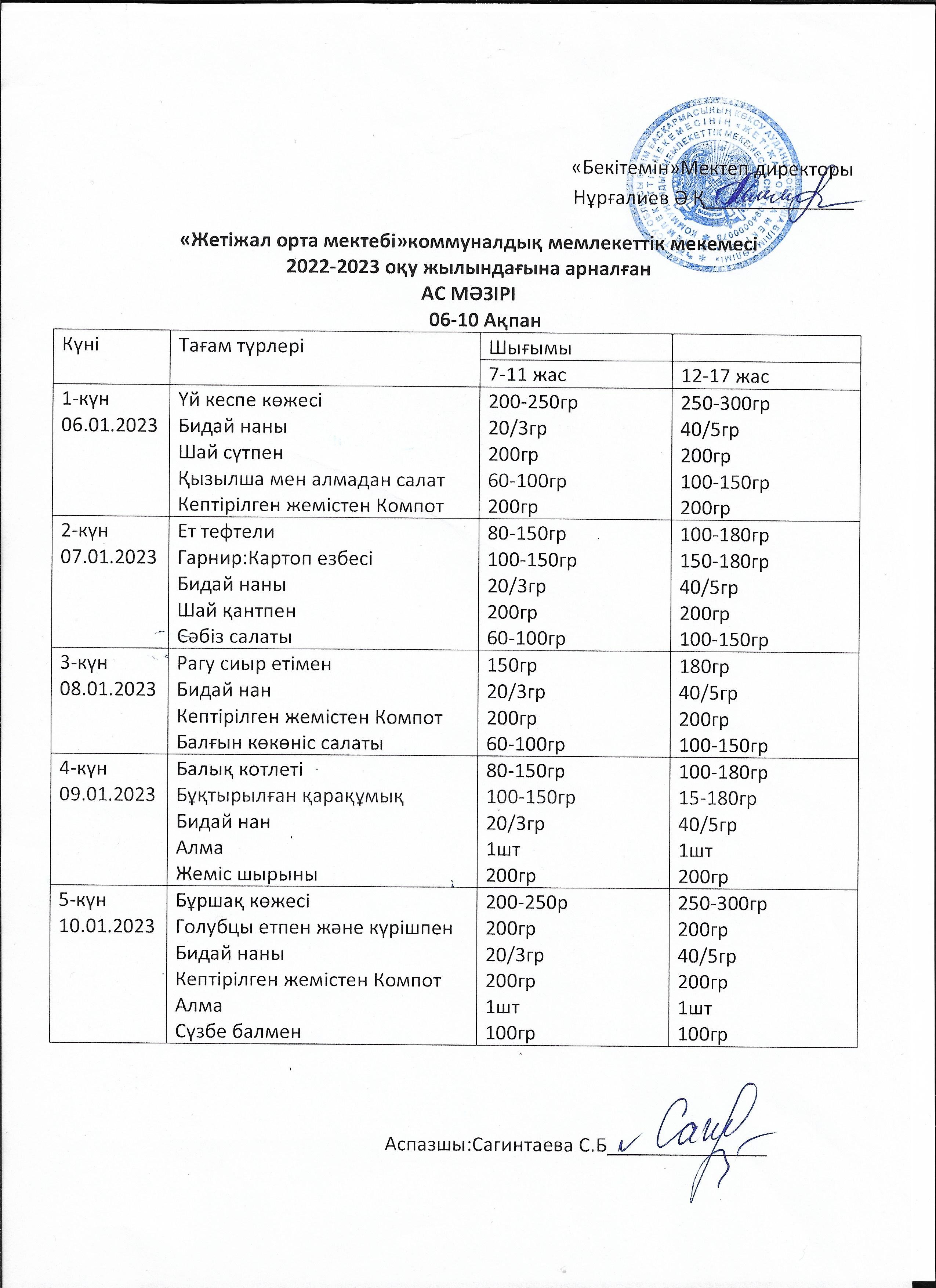 06-10 ақпан аралығы "Ас мәзірі" » Көксу ауданы Жетіжал орта мектебі