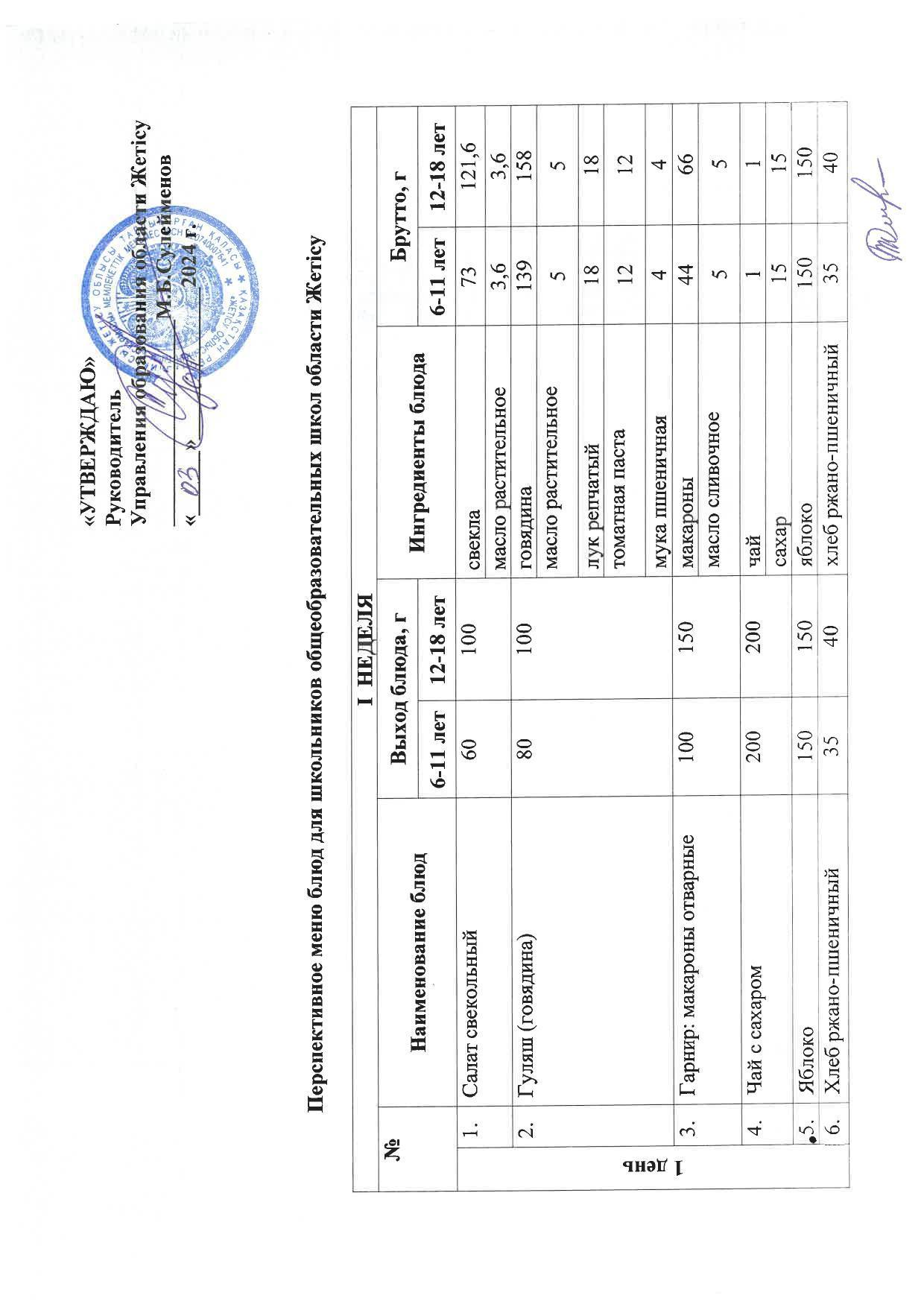 05 январь 2024 0 1 2 3 4 5 Жетісу облысы жалпы білім беретін мектептердің оқушыларына арналған тағамдардың перспективалық ас мәзірі