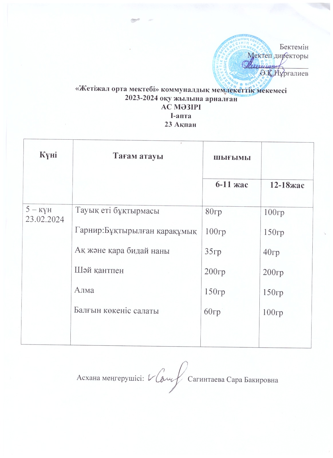05 февраль 2024 Ас мәзірі 05.02.2024ж.