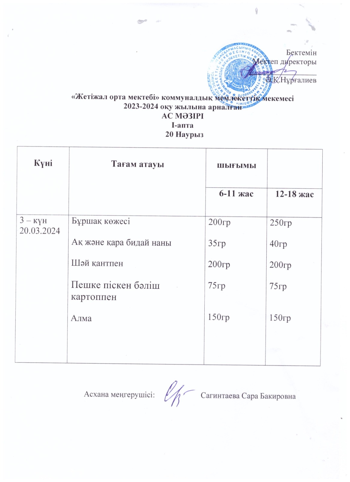 Ас мәзірі 20.03.2024ж » Көксу ауданы Жетіжал орта мектебі